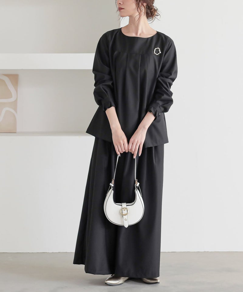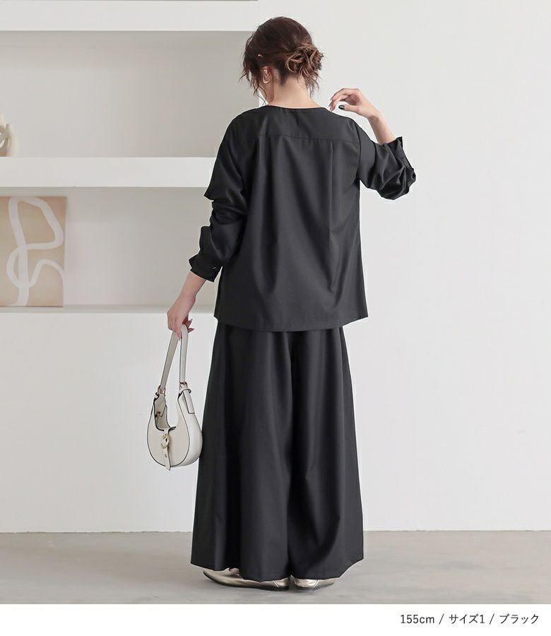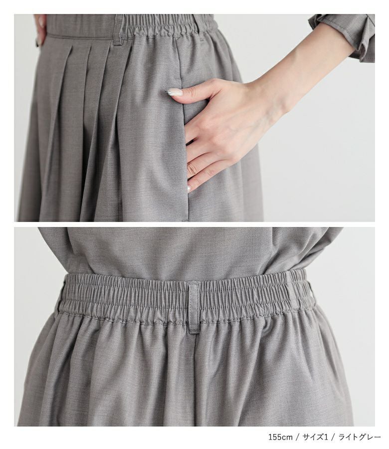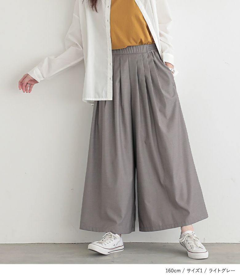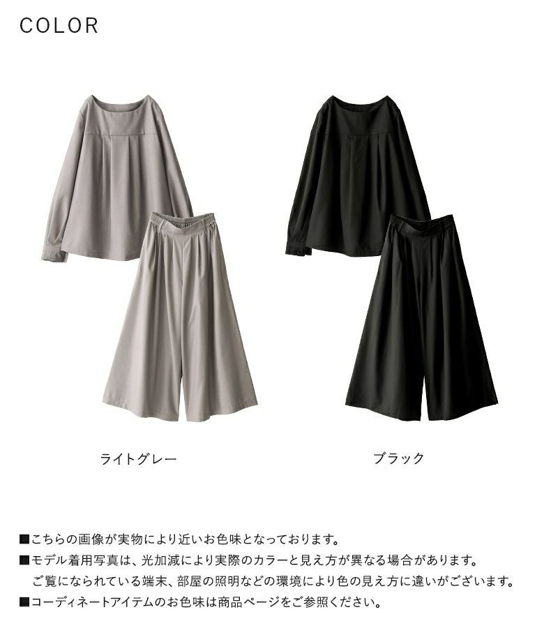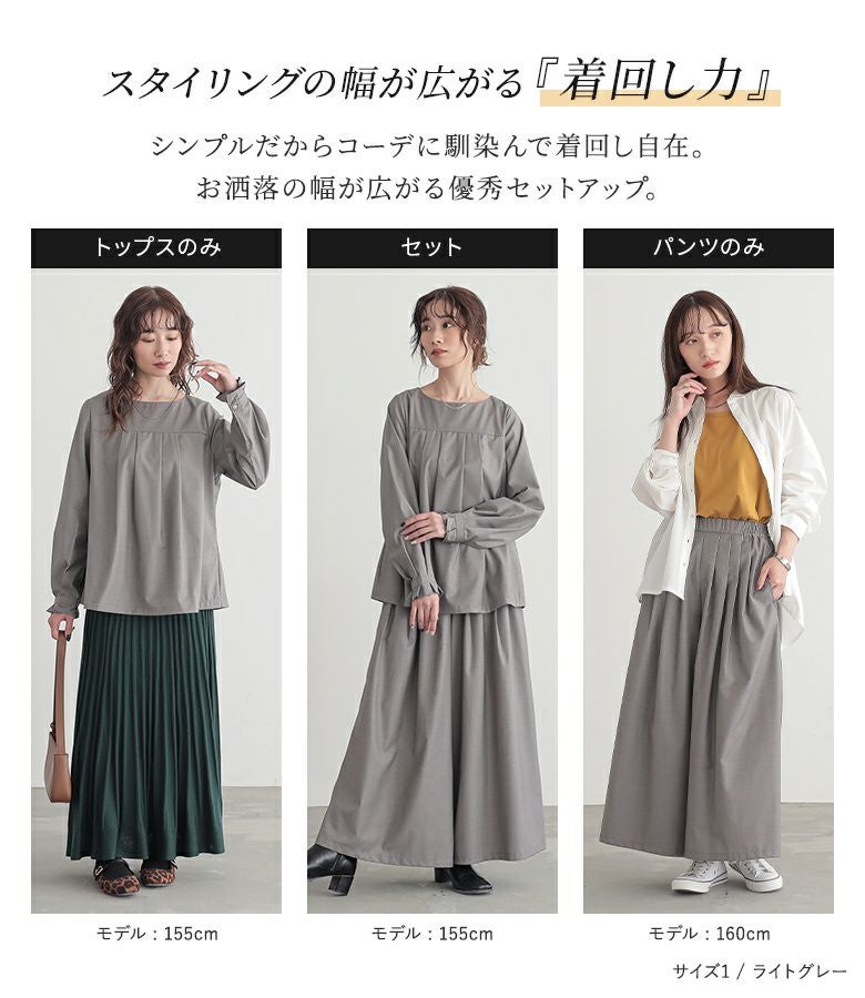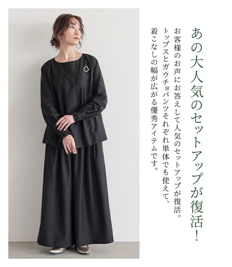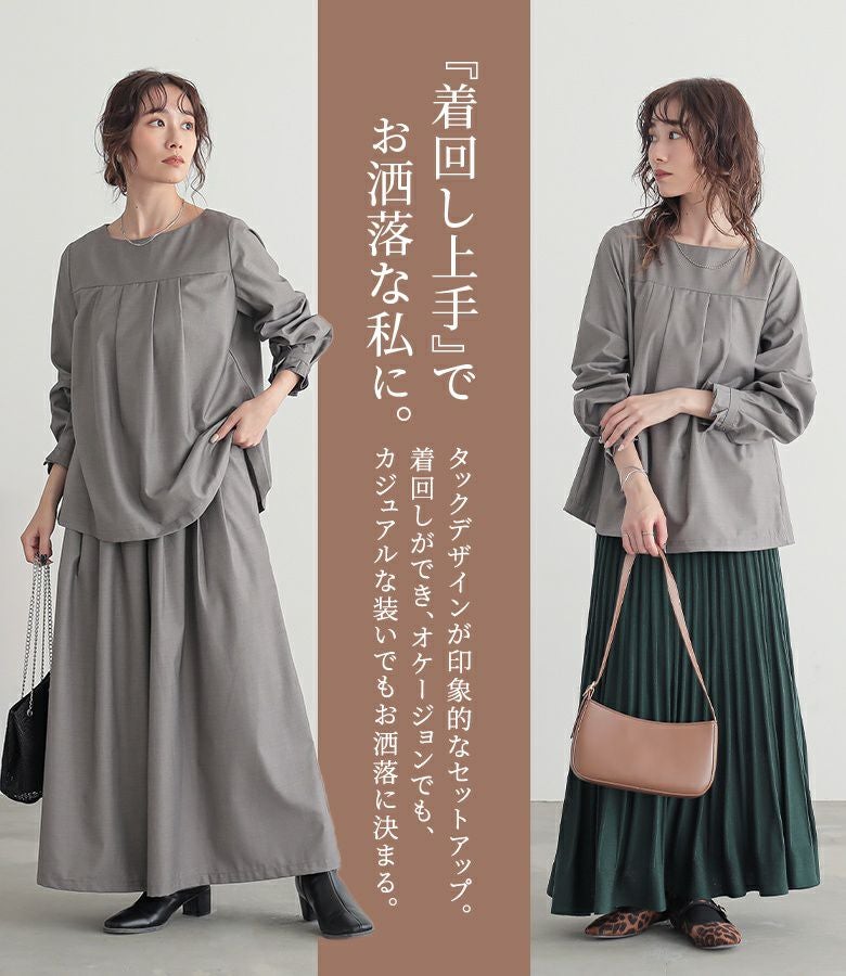 シンプルだからコーデに馴染んで着回し自在≪n'OrLABEL≫タックデザインガウチョセットアップです。