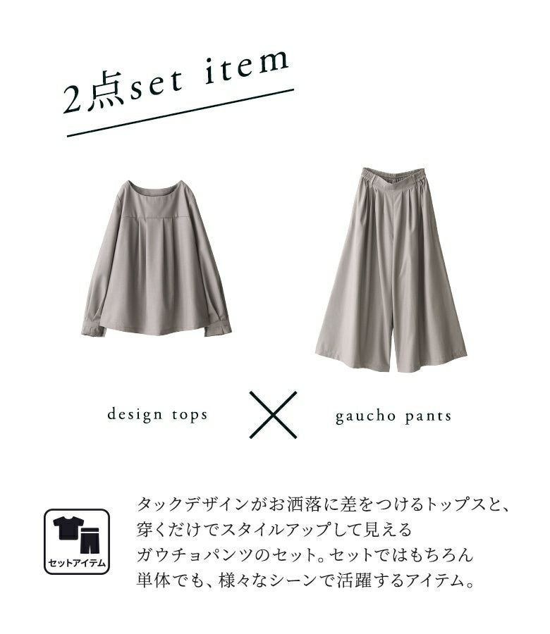 タックデザインが印象的な、トップス&ガウチョパンツのセットアップ♪