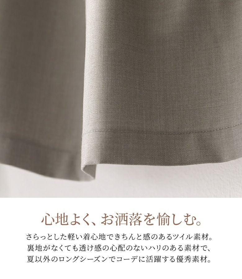 さらっとした軽い着心地で、ハリのある素材だから、着るだけできちんと感のある印象に。