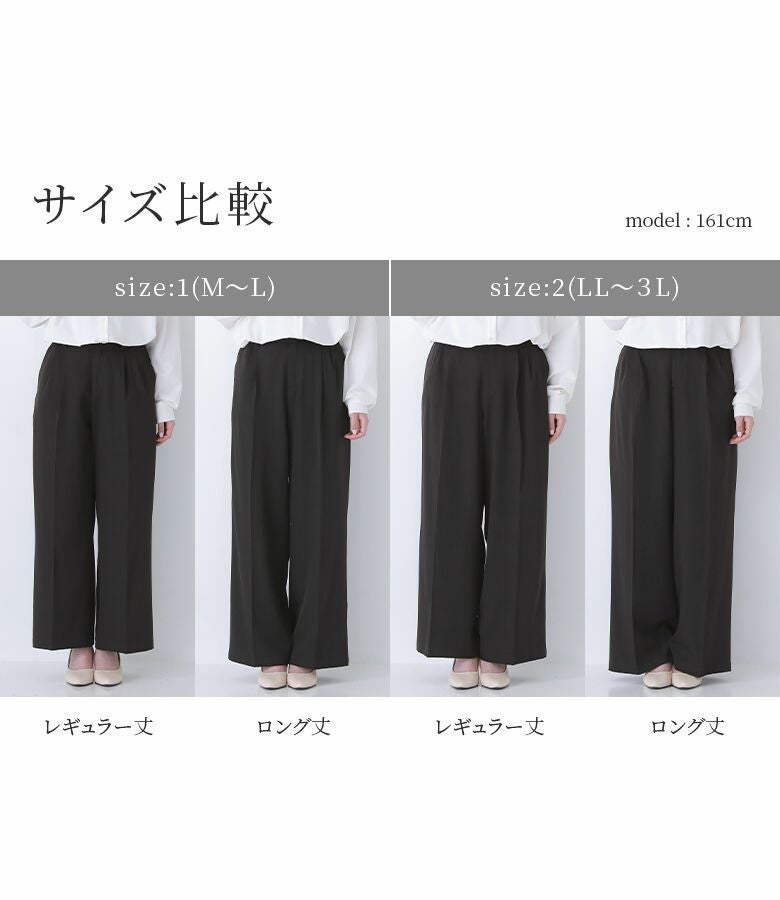 【2(LL~3L)】 着丈(レギュラー、ロング丈):かかとが隠れる位 ウエスト:大きい ヒップ:大きい 太もも周り:大きい 全体:大きい