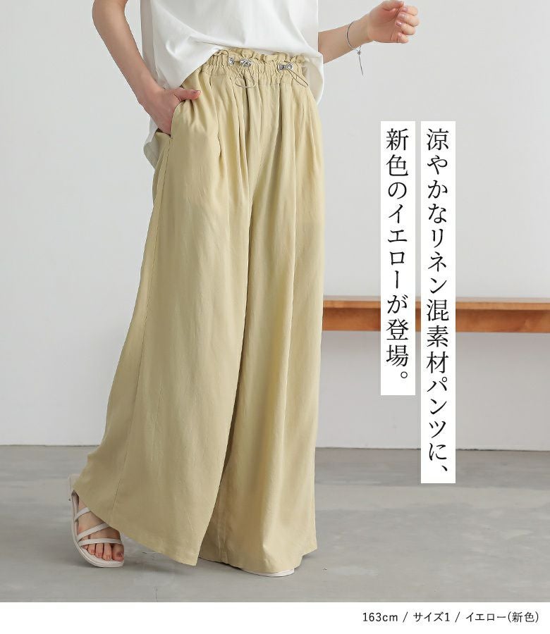 【新色登場】『リネン混ウエストドロストワイドパンツ』