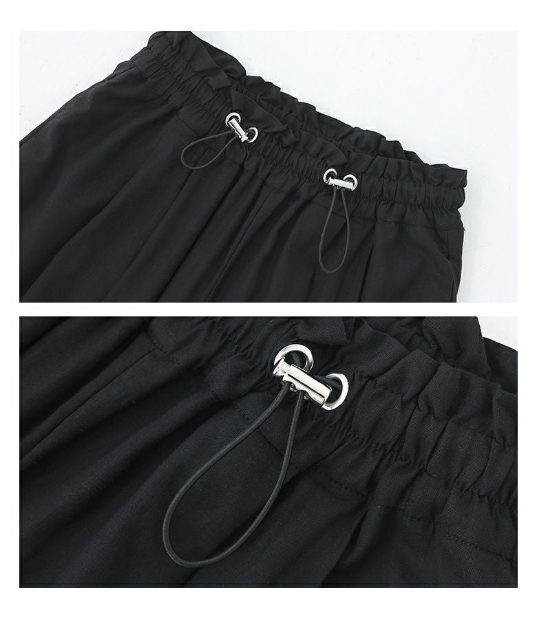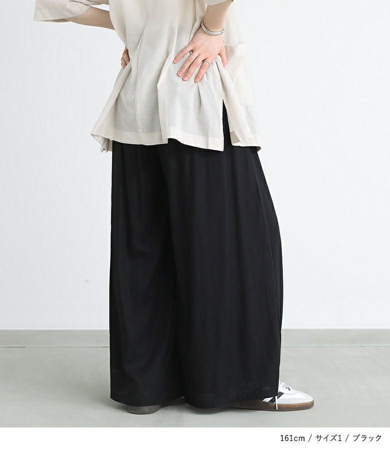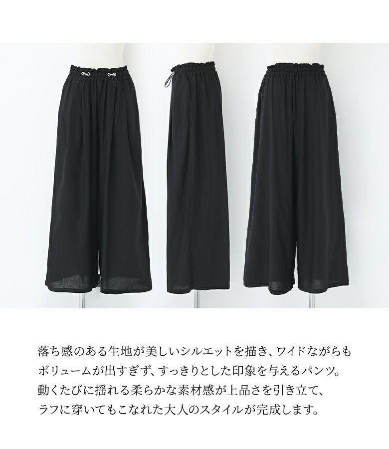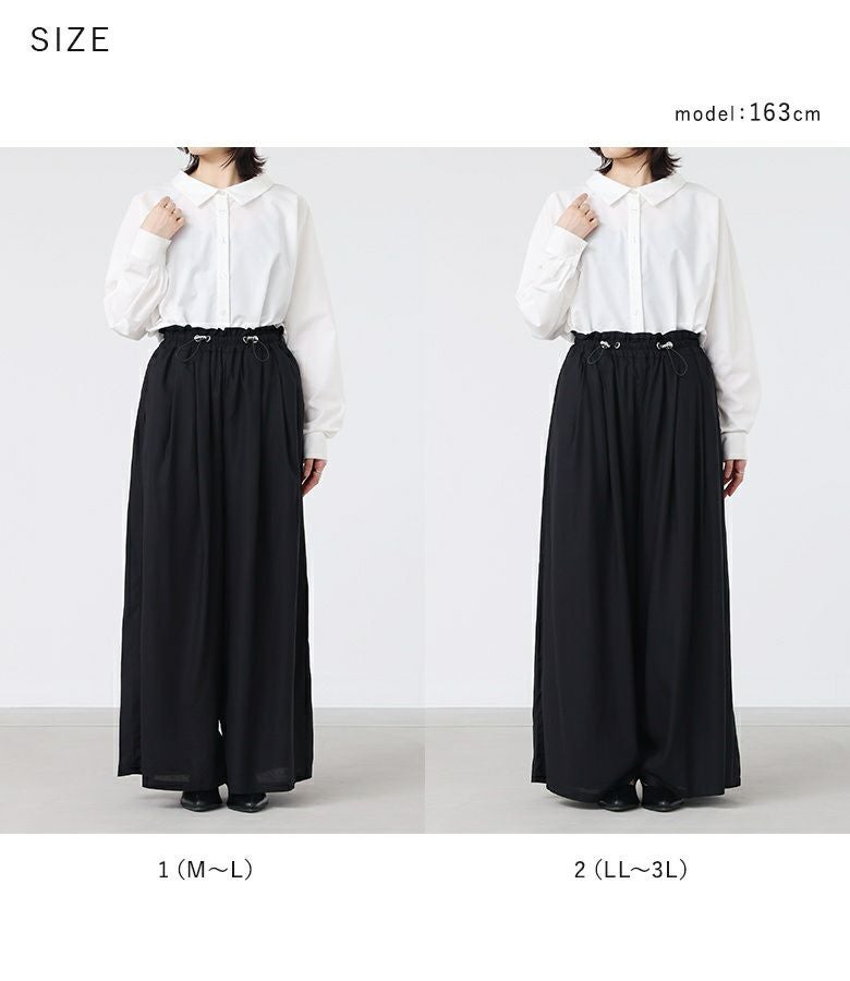選べるM~3Lサイズ展開!すっきり着用できるドロスト付きワイドパンツ。