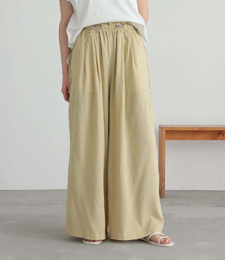 4. 【新色登場】『リネン混ウエストドロストワイドパンツ』【メール便不可】【20】