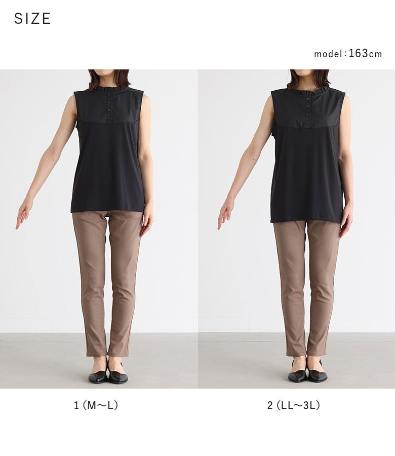 選べるM~3Lサイズ展開!インしてお洒落♪ネックフリルタンクトップ。