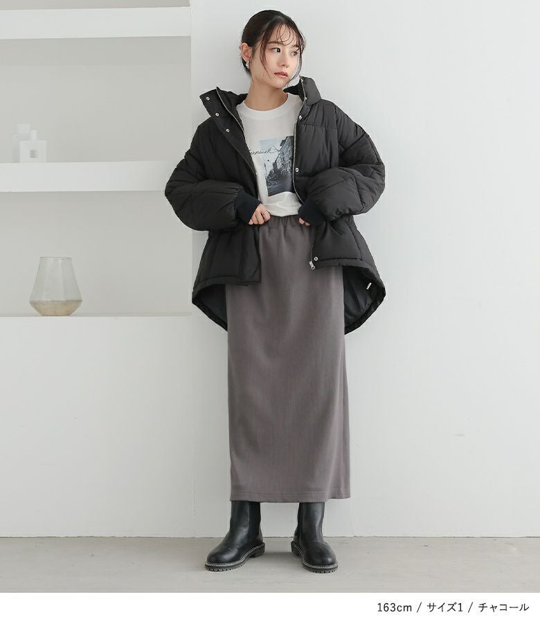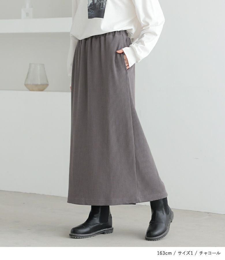 ウエストジャストサイズですがゴムなので苦しくなく穿けました。シルエットはスッキリと着られました。