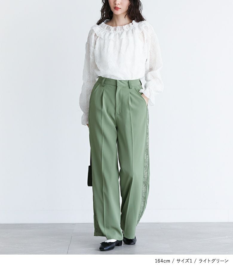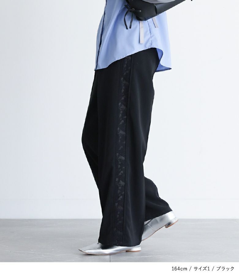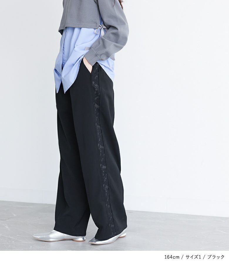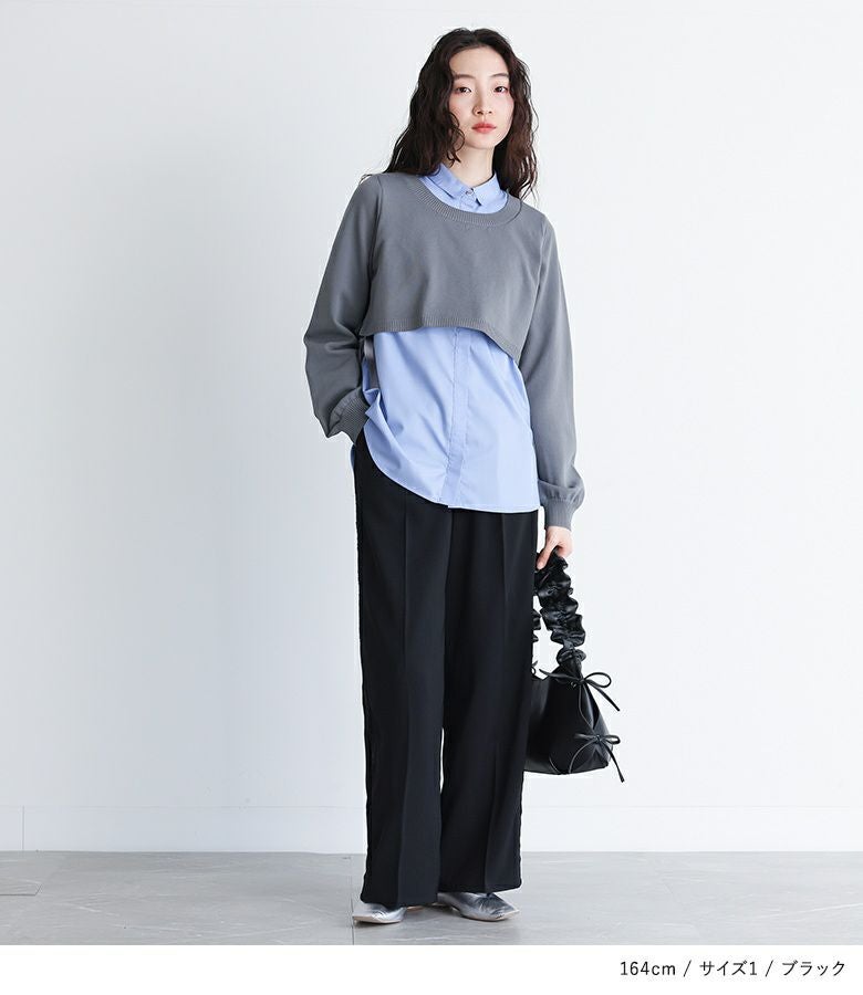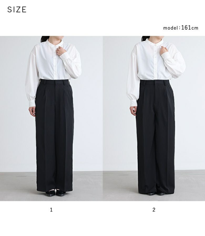 【普段着用】 Tops: M Bottoms: M | 【1】 着丈(ウエスト穿き):かかとが隠れる位 ウエスト:ジャスト ヒップ:ややゆったり 太もも周り:ややゆったり 全体:ゆったり