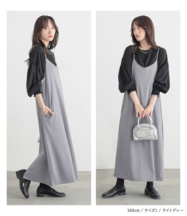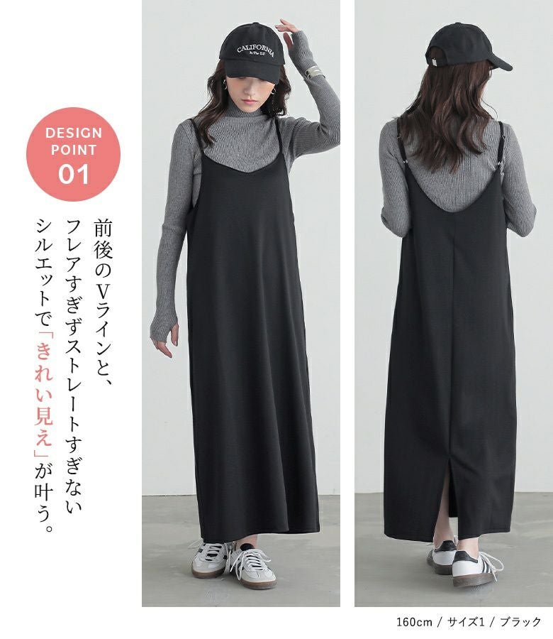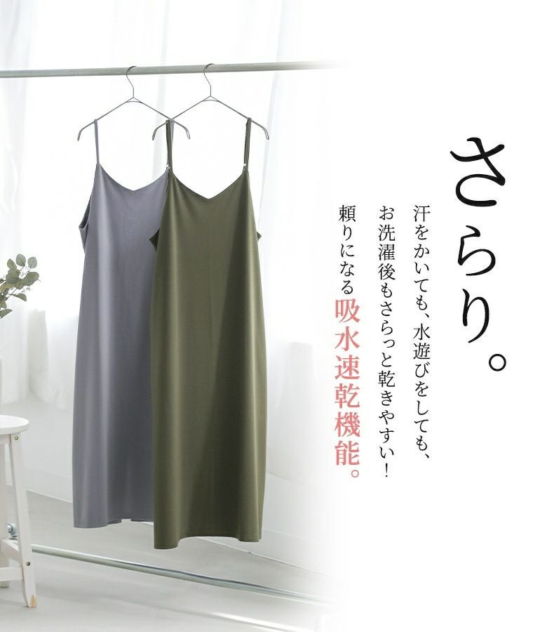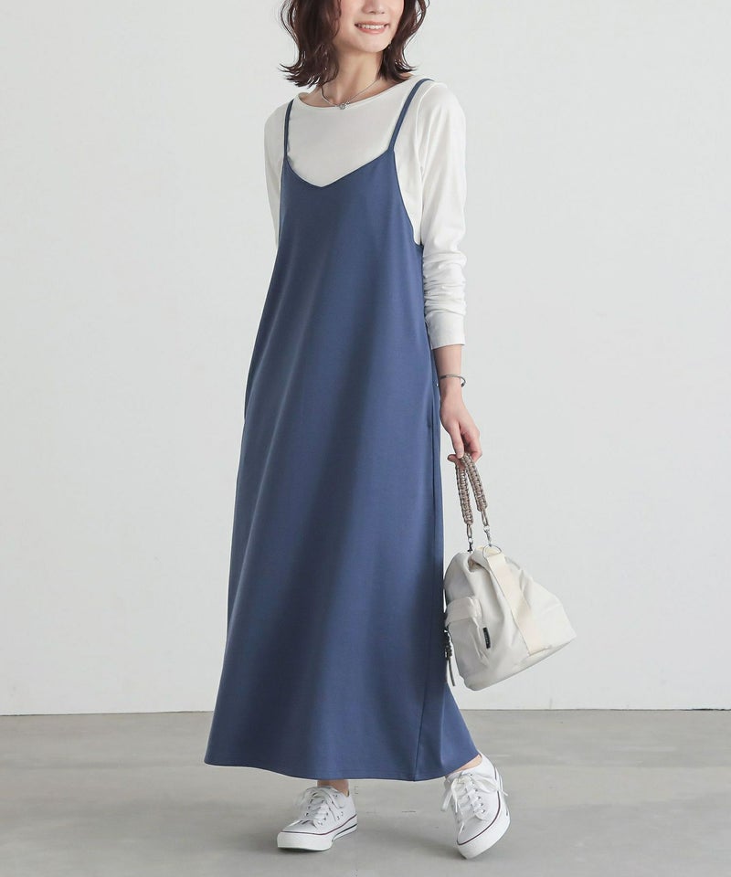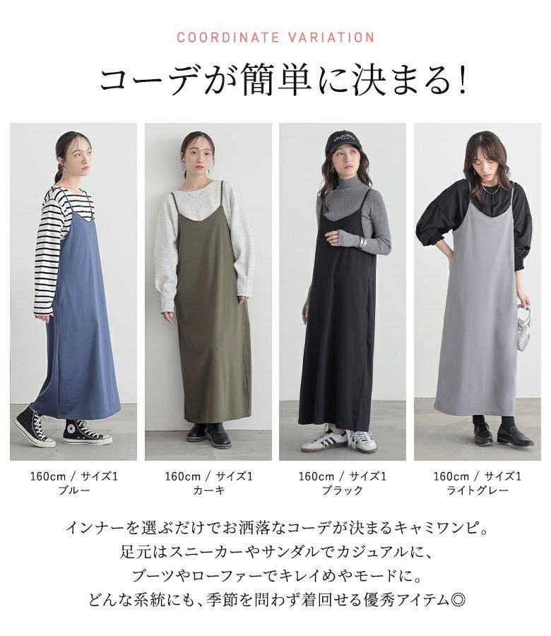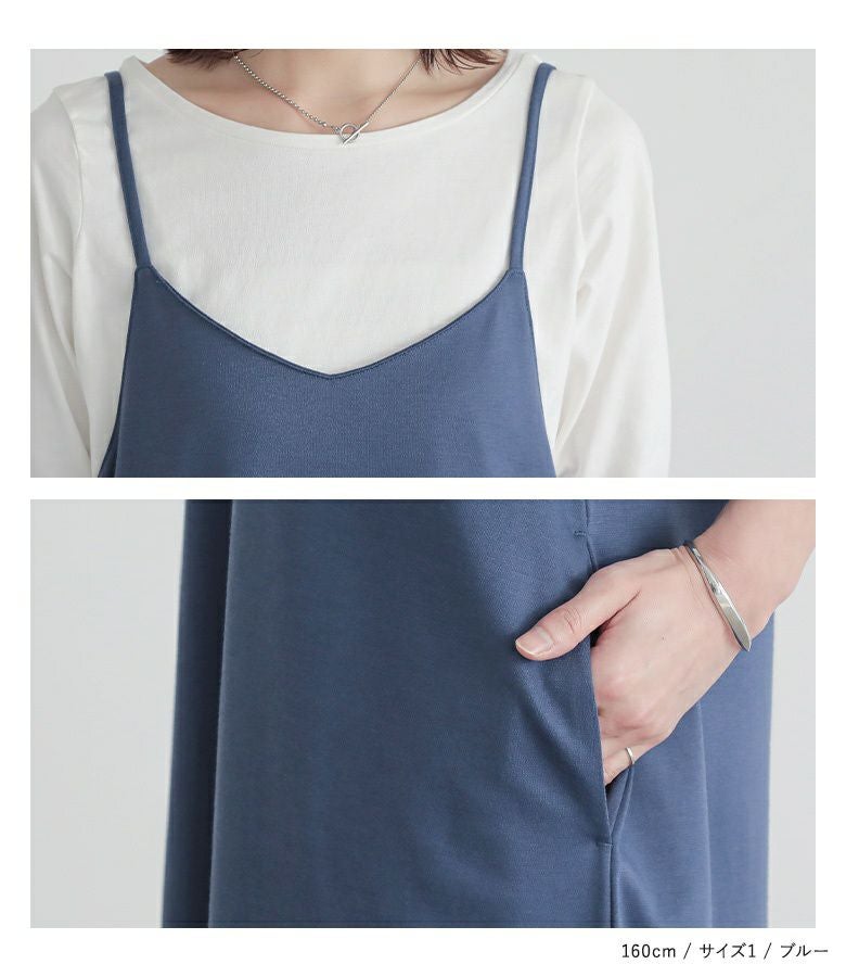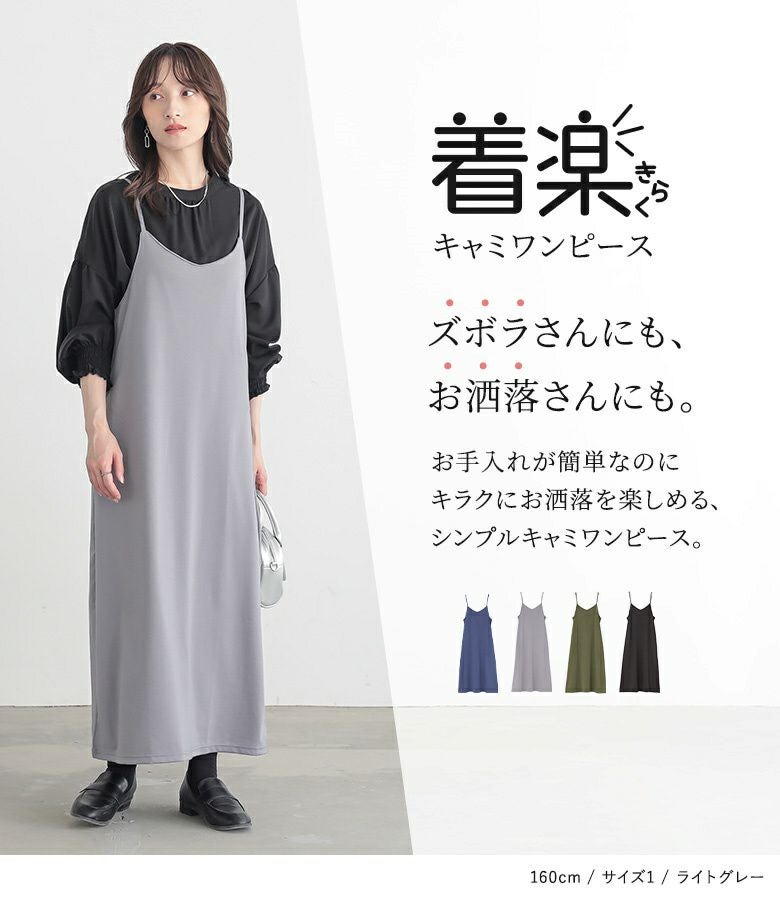 選べる2サイズ展開!スポッと簡単に着られて、お手入れも楽なカットソーキャミワンピース。