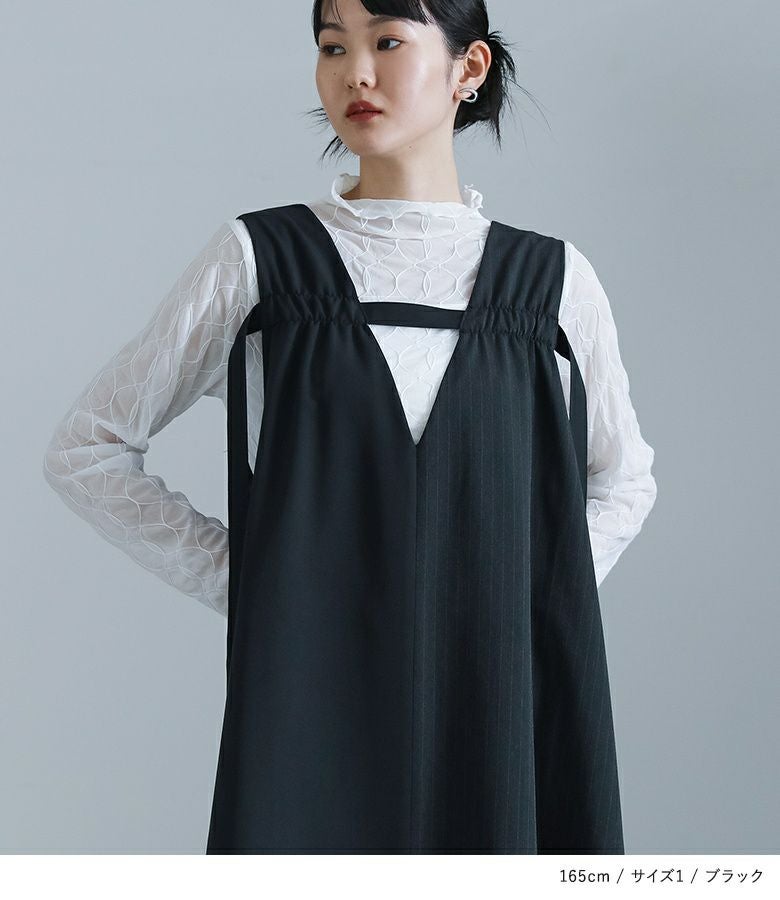 ゆったりとした着用感で、胸元のデザインで身体がすっきり見えしました。