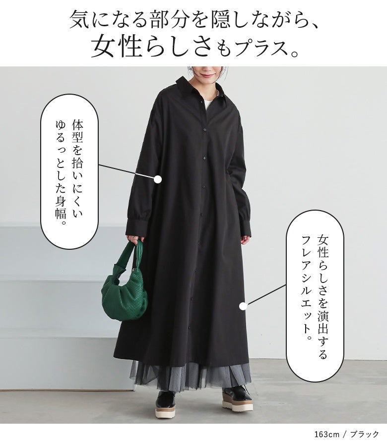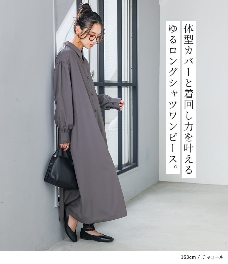体型カバーと着回し力を叶えるゆるロングシャツワンピース。