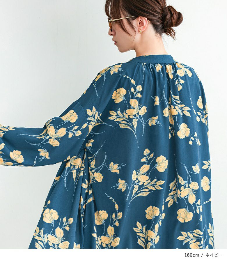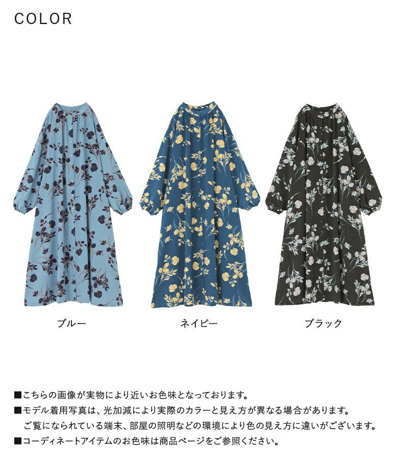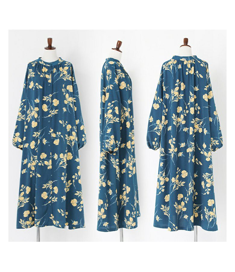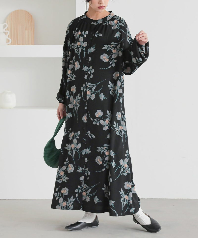 【10%OFF】ゆるっとシルエット×大胆な花柄で視線を奪う、ボリュームスリーブワンピース。