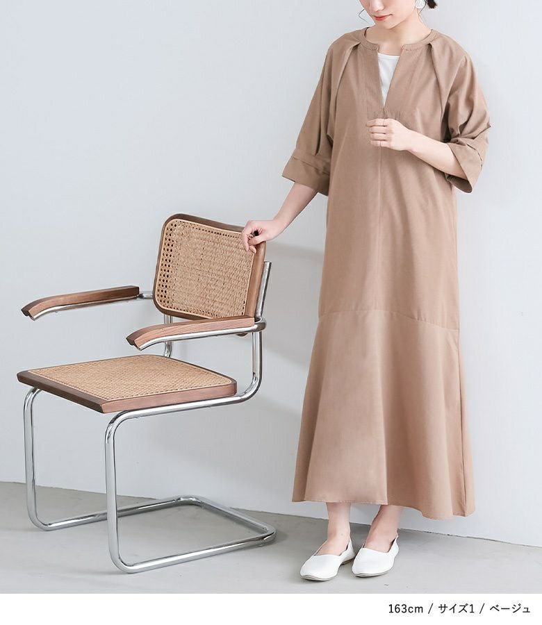 【2】 袖丈:ひじ下10cm位 着丈:くるぶし位 腕周り:ゆったり バスト:ゆったり ウエスト:ゆったり ヒップ:ゆったり 全体:ゆったり
