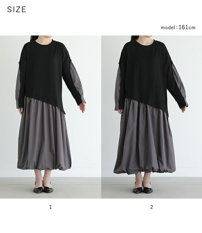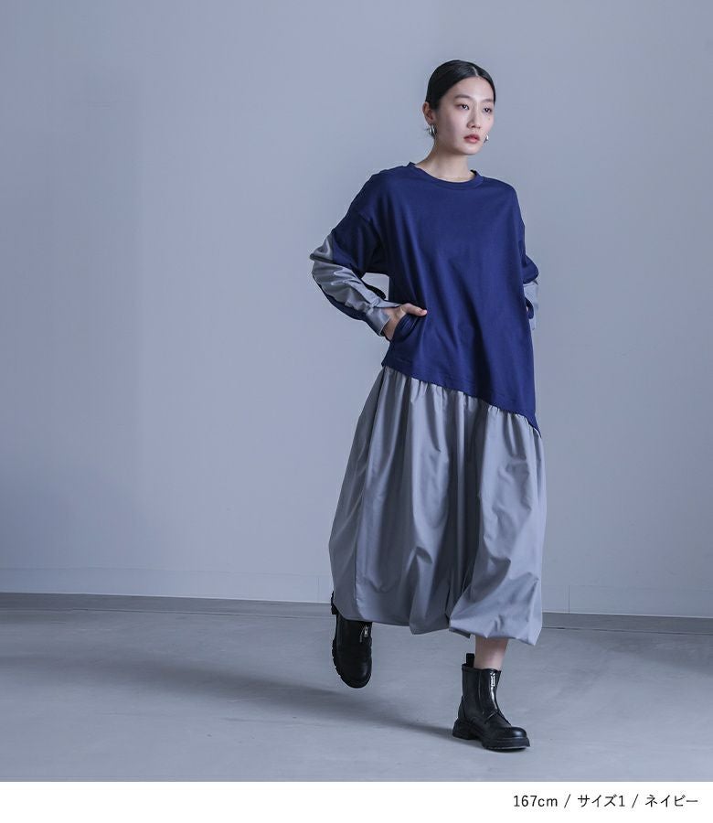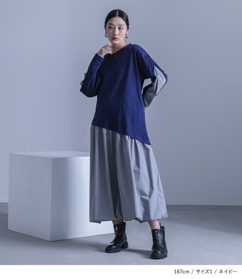 【普段着用】 Tops: M Bottoms: M | 【1】 袖丈:手首位 着丈:ふくらはぎが隠れる位 腕周り:ゆったり バスト:ゆったり ウエスト:ややゆったり ヒップ:ゆったり 全体:ゆったり