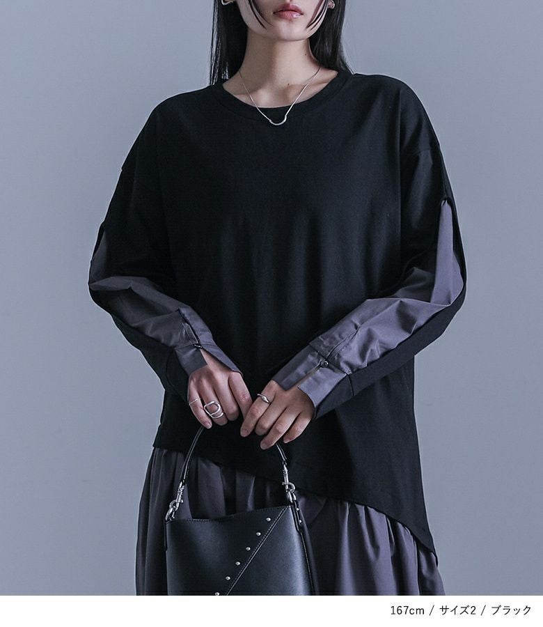 【普段着用】 Tops: L/LL Bottoms: L/LL | 【1】 袖丈:手の甲真ん中位 着丈:くるぶし上10cm位 腕周り:ややゆったり バスト:ジャスト ウエスト:ジャスト ヒップ:ジャスト 全体:ジャスト