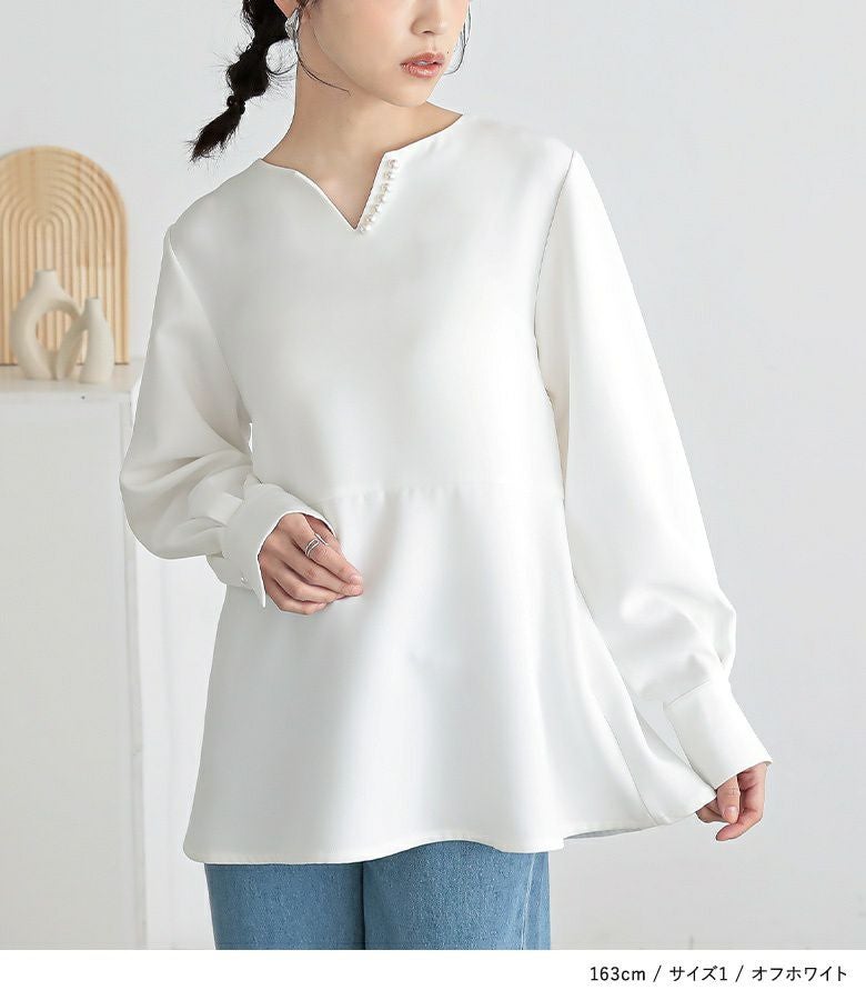 【普段着用】 Tops: M Bottoms: M/L | 【1】 ●トップス 袖丈:手首位 着丈:ヒップ下少し見える位 ●パンツ 着丈(ウエスト穿き):くるぶしが隠れる位