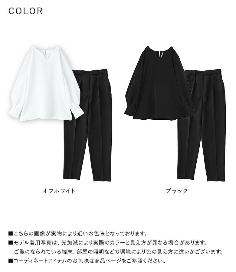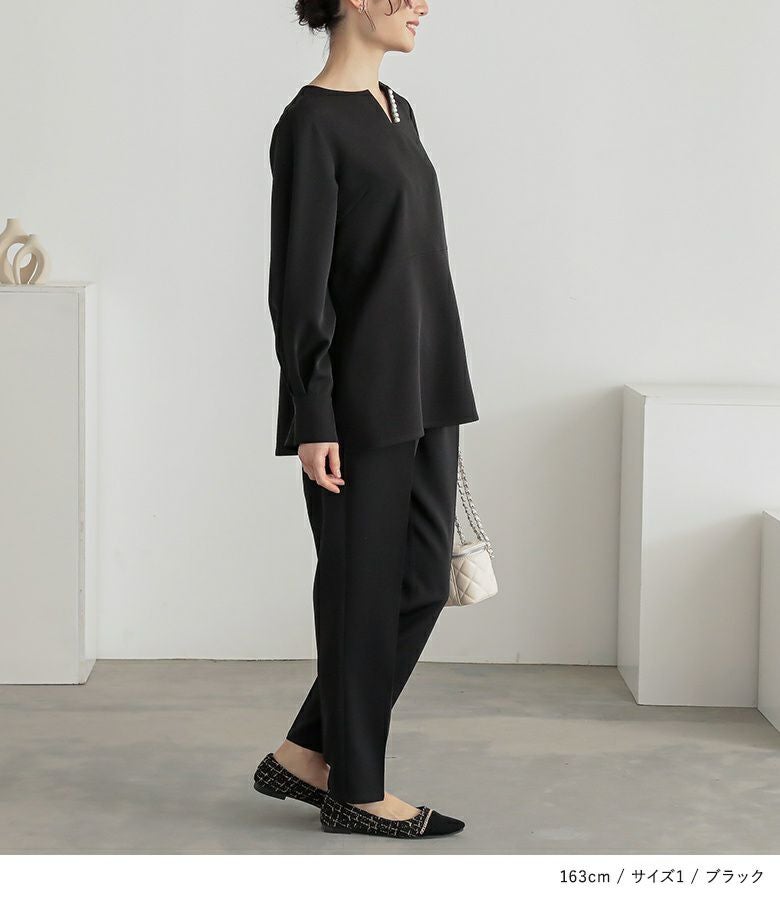 【普段着用】 Tops: L Bottoms: L | 【1】 ●トップス 袖丈:手首位 着丈:ヒップ下少し見える位 ●パンツ 着丈(ウエスト穿き):くるぶしが隠れる位