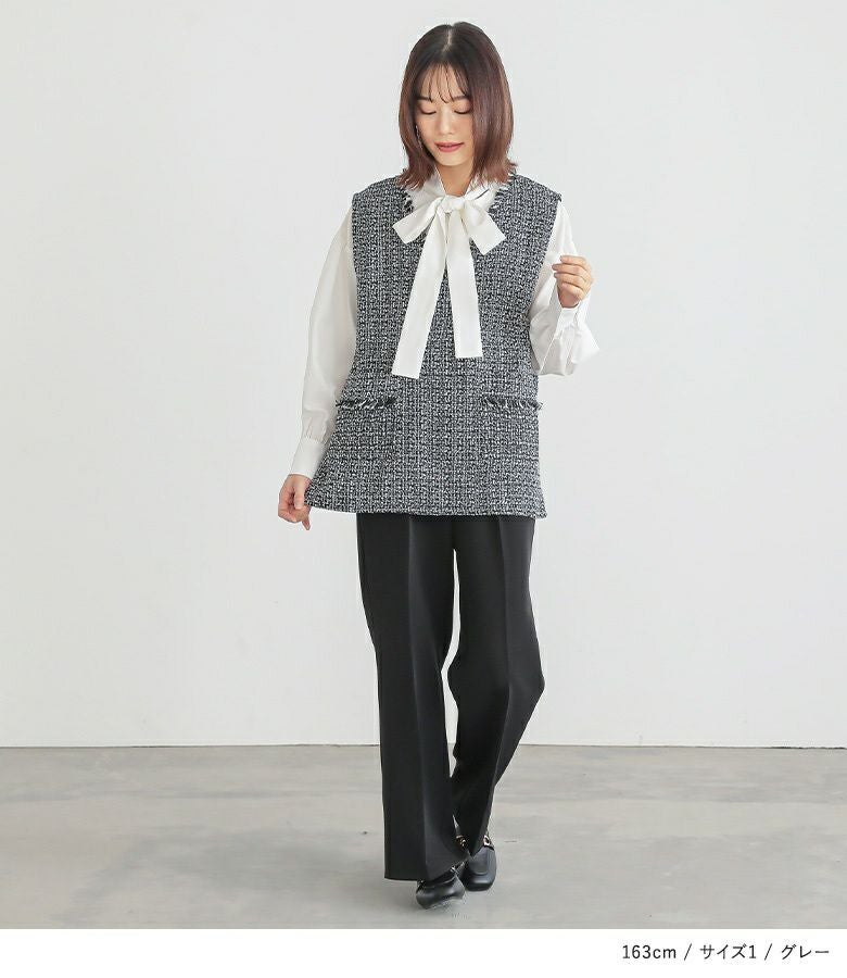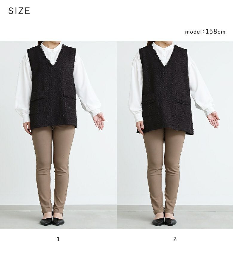 ゆったりめなので厚めのトップスの上からでも着られそうです。