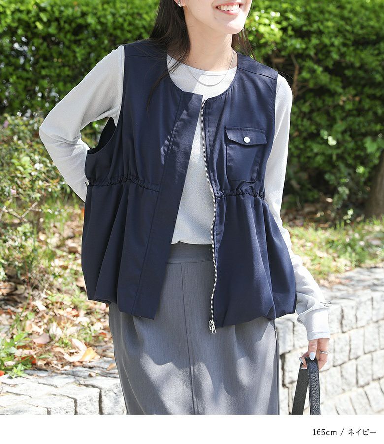 ふんわりとしたボリューム感のあるバルーン裾デザインのベスト。ゆるっと羽織るだけで女性らしい華やかさ演出でき、レイヤードにぴったりです。いつものコーディネートにプラスワンするだけで、着こなしの鮮度が高まります。