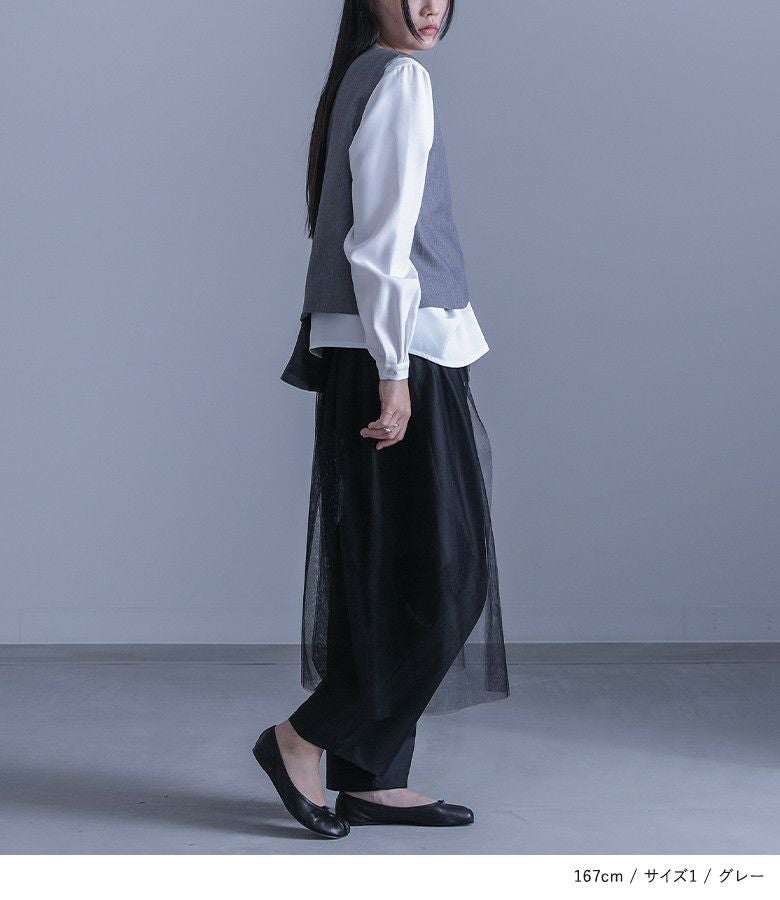 【2】 着丈:ヒップ真ん中より下位 腕周り:ゆったり バスト:ややゆったり 全体:ややゆったり