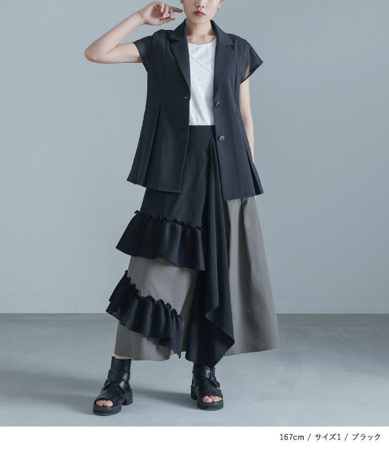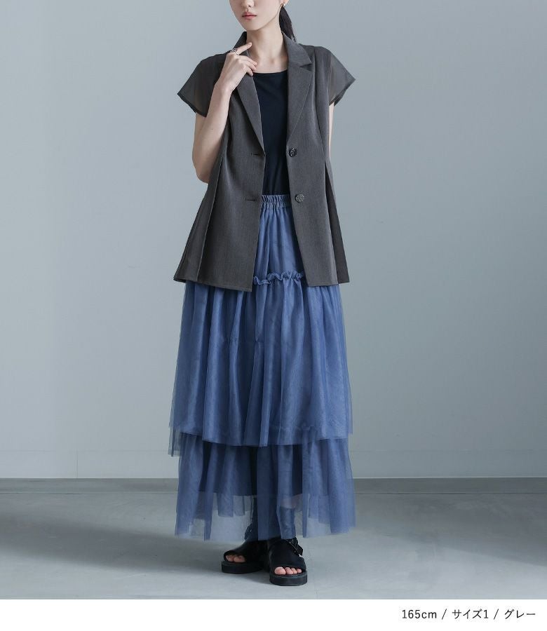 【普段着用】 Tops: M Bottoms: M | 【1】 袖丈:ノースリーブ 着丈:ヒップ下少し見える位 腕周り:ゆったり バスト:ゆったり 全体:ややゆったり