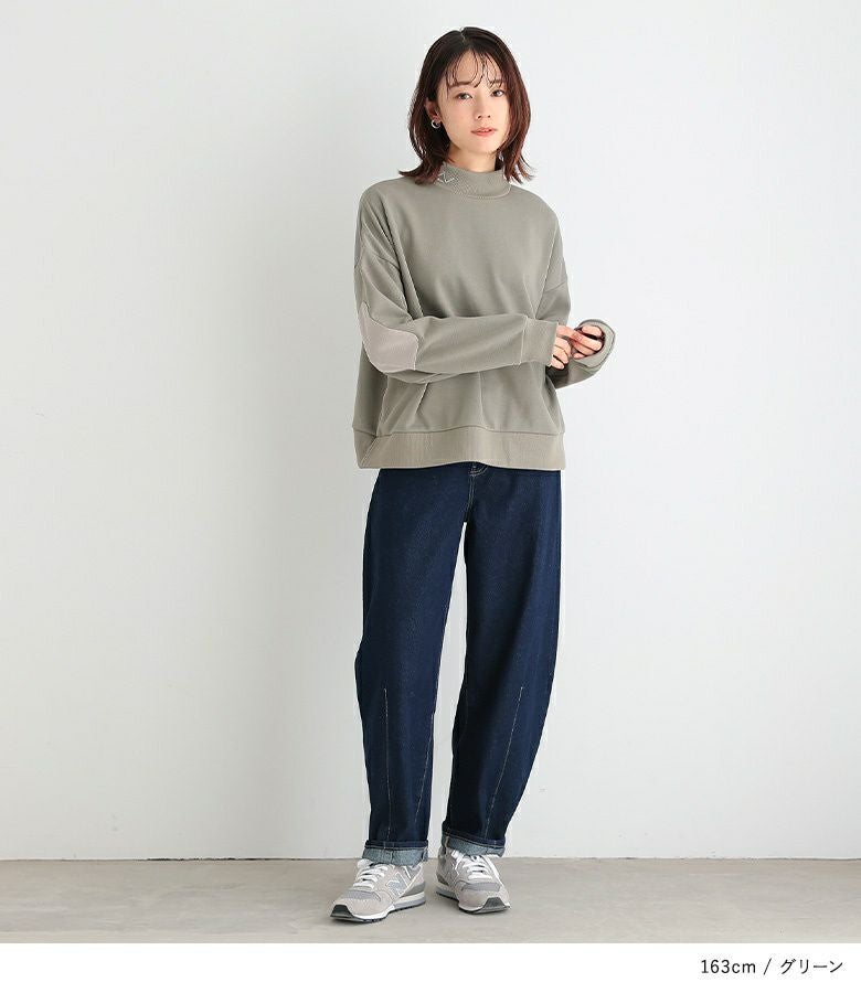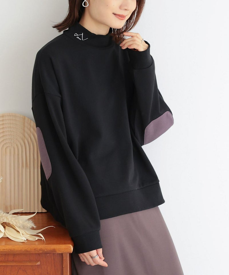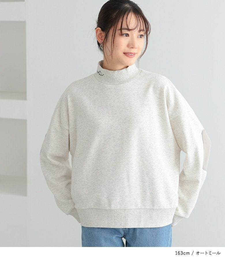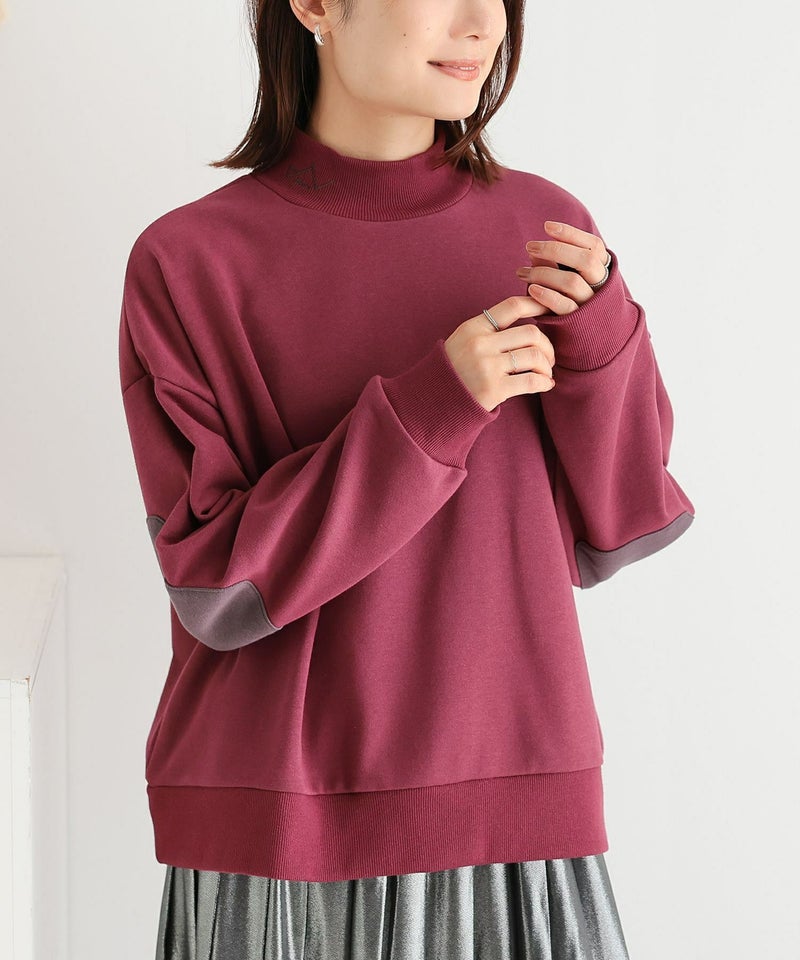 襟元の刺繍ロゴがポイント♪シンプルなハイネックデザインの裏毛スウェットトップス。