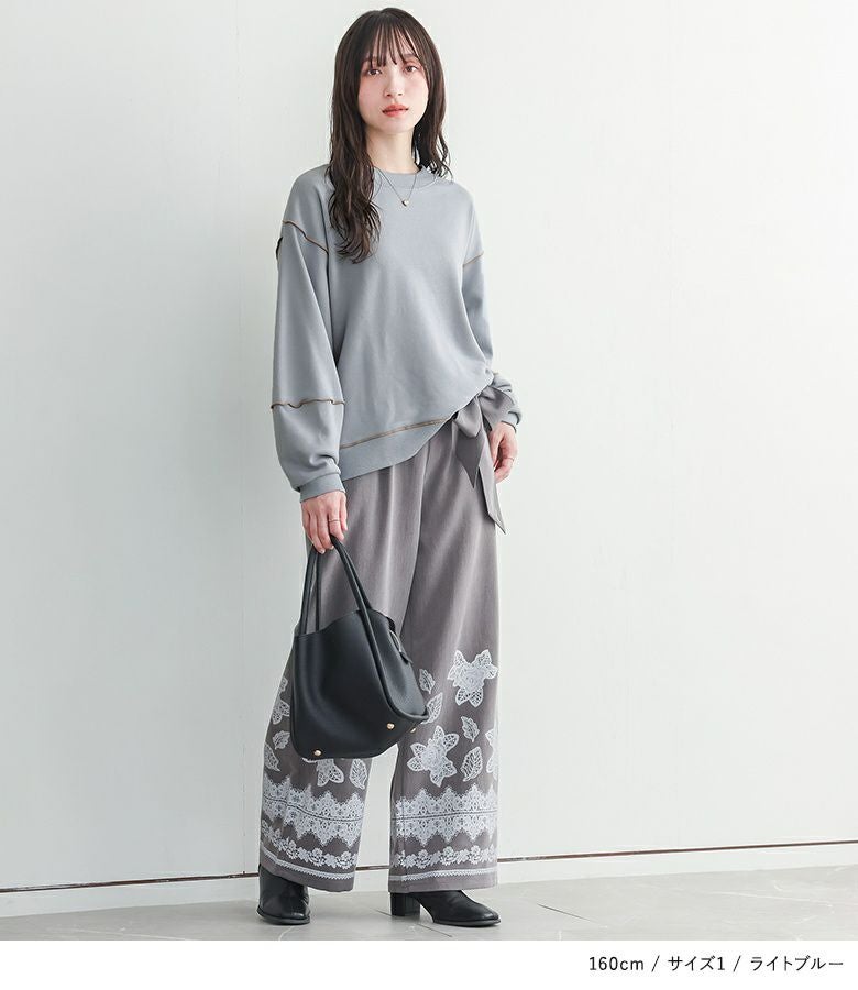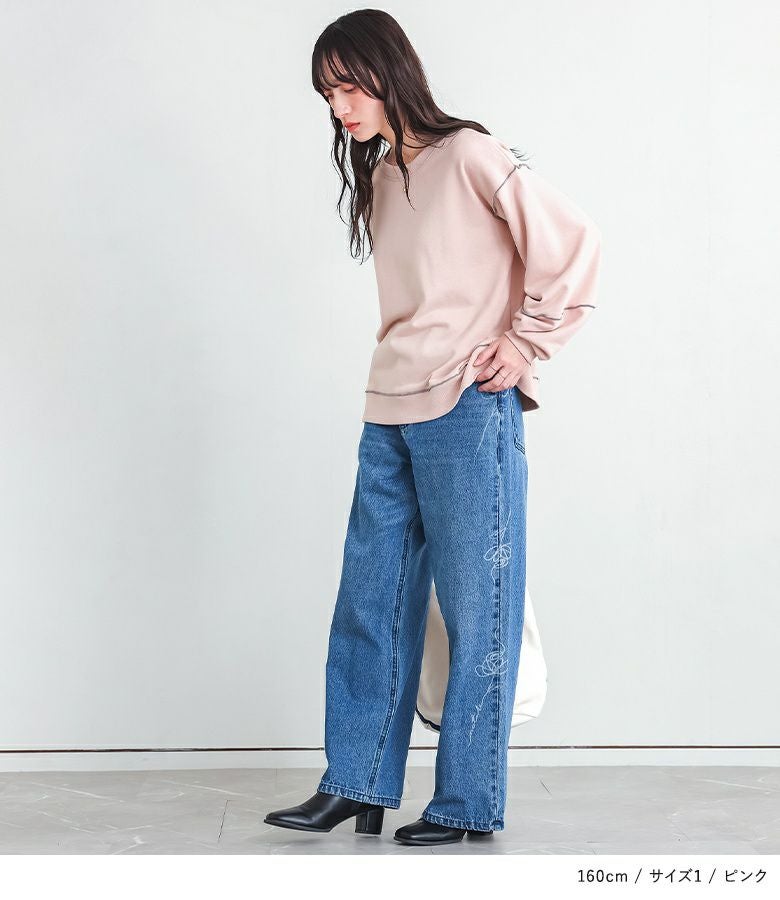 【普段着用】 Tops:M/L Bottoms: M/L | 【1】 袖丈:手首位 着丈:ヒップ上3cm位 腕周り:ややゆったり バスト:ややゆったり 全体:ややゆったり
