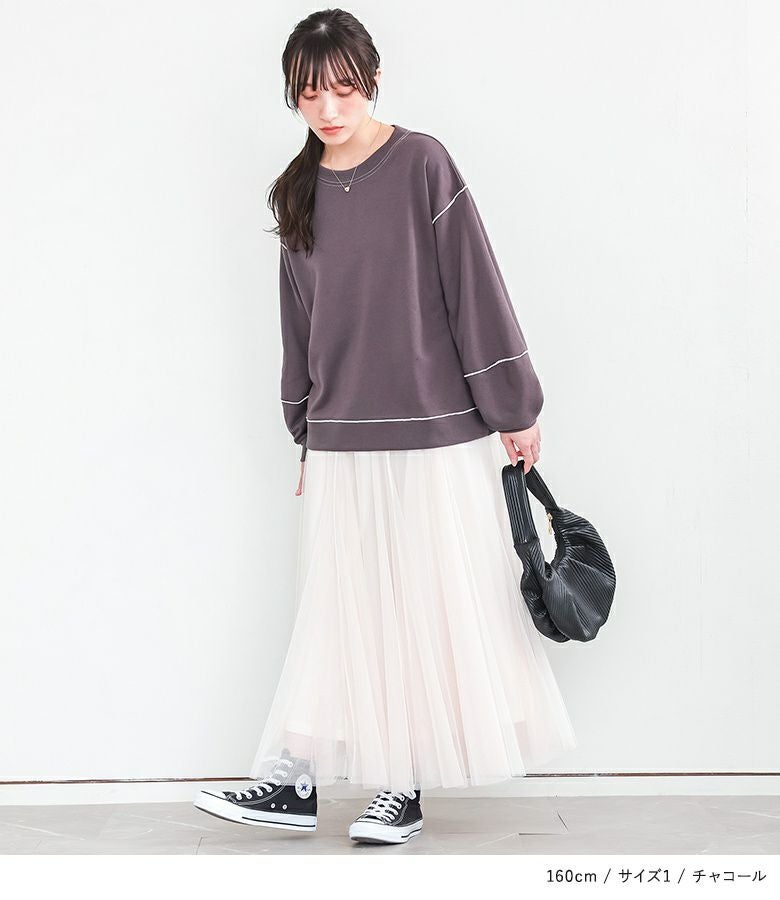 【普段着用】 Tops: S/M Bottoms: S/M | 【1】 袖丈:手の甲が隠れる位 着丈:ヒップ真ん中より上位 腕周り:ややゆったり バスト:ややゆったり 全体:ややゆったり