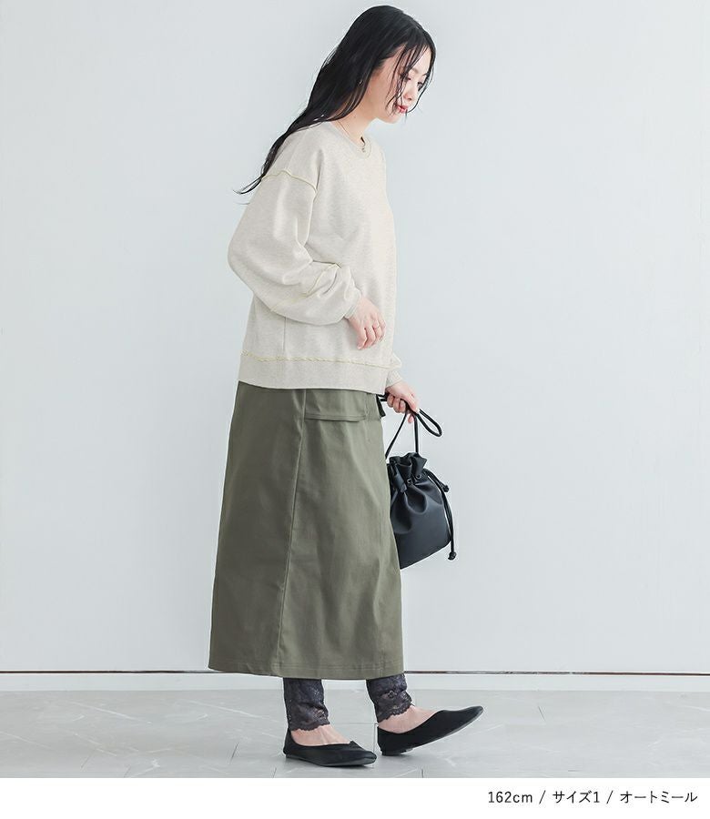 【普段着用】 Tops: L/LL Bottoms: L/LL | 【1】 袖丈:手の甲が隠れる位 着丈:ヒップ真ん中位 腕周り:ややゆったり バスト:ややゆったり 全体:ややゆったり