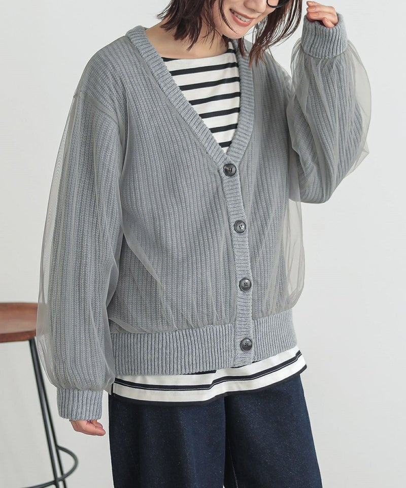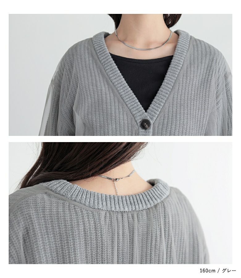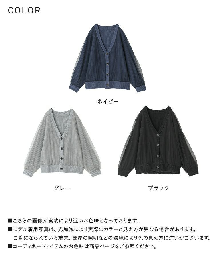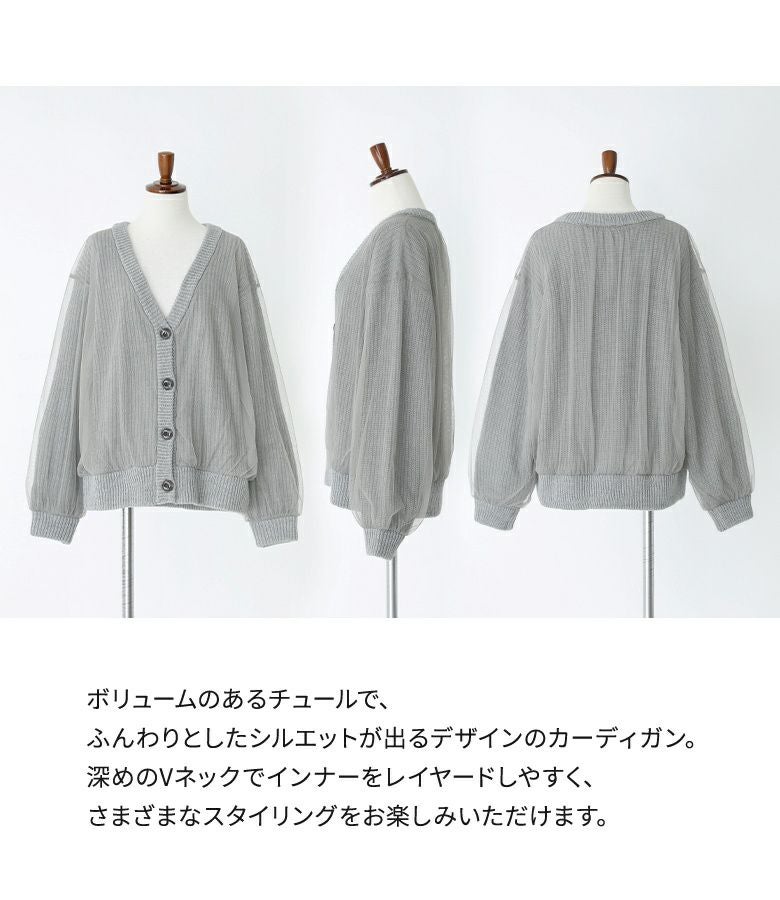 ボリュームのあるチュールでふんわりとしたシルエットが出るデザインカーディガン。