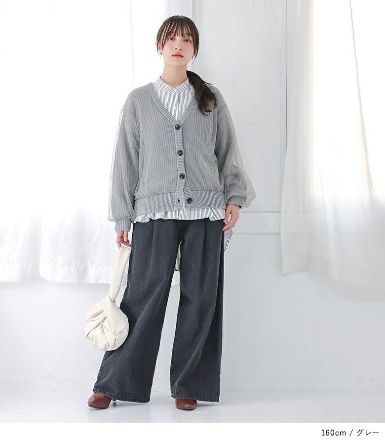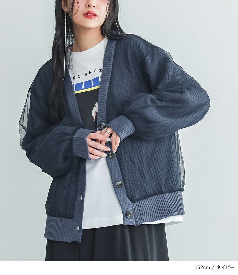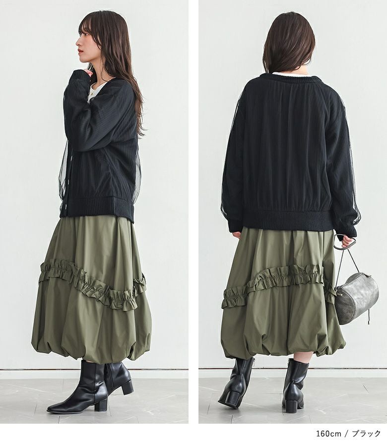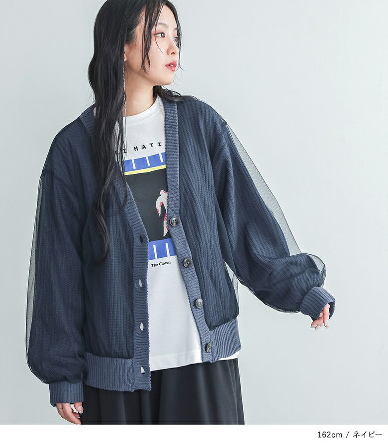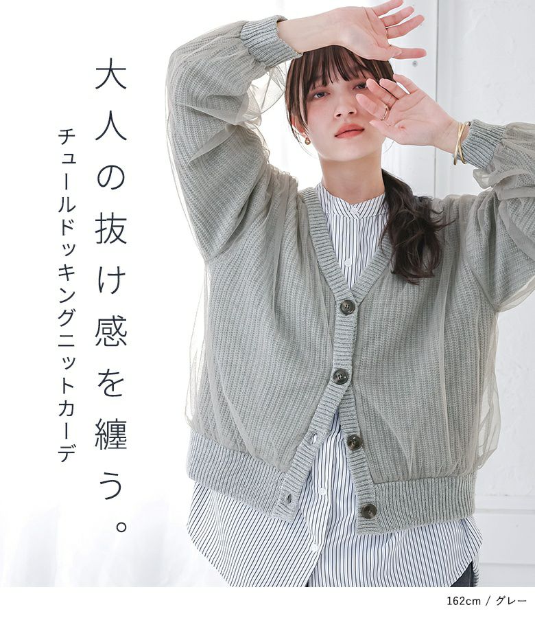 ボリュームのあるチュールでふんわりとしたシルエットが出るデザインカーディガン。