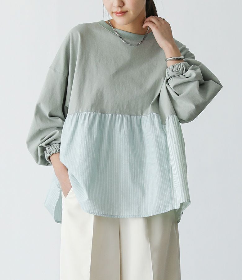 5. 『異素材ストライプ切り替えプルオーバー』【メール便不可】【30】
