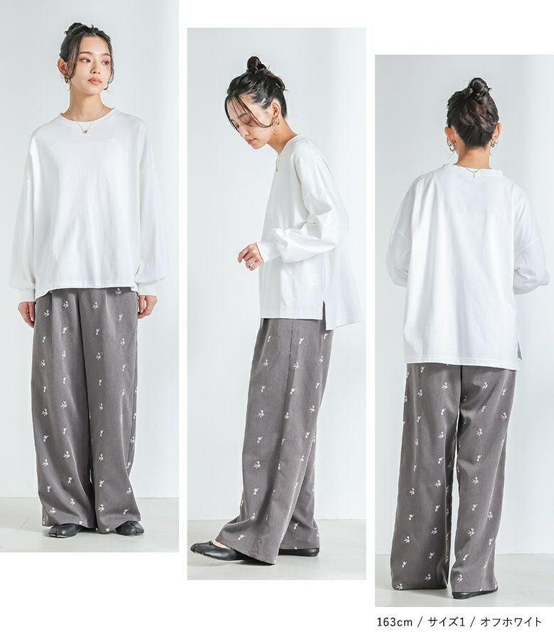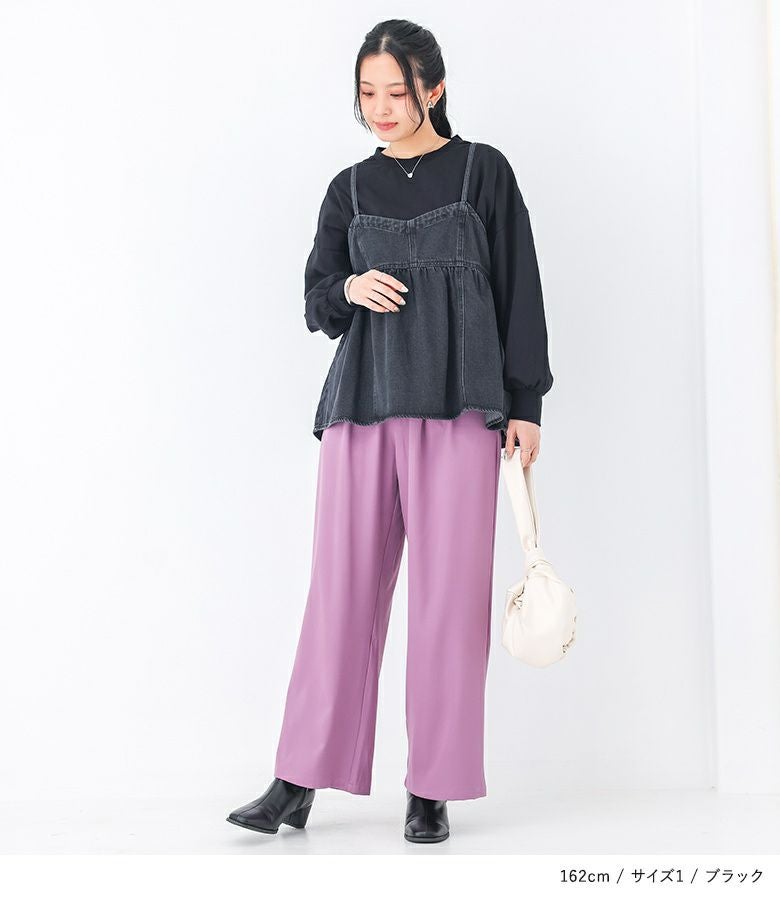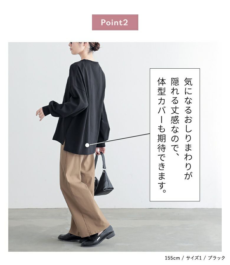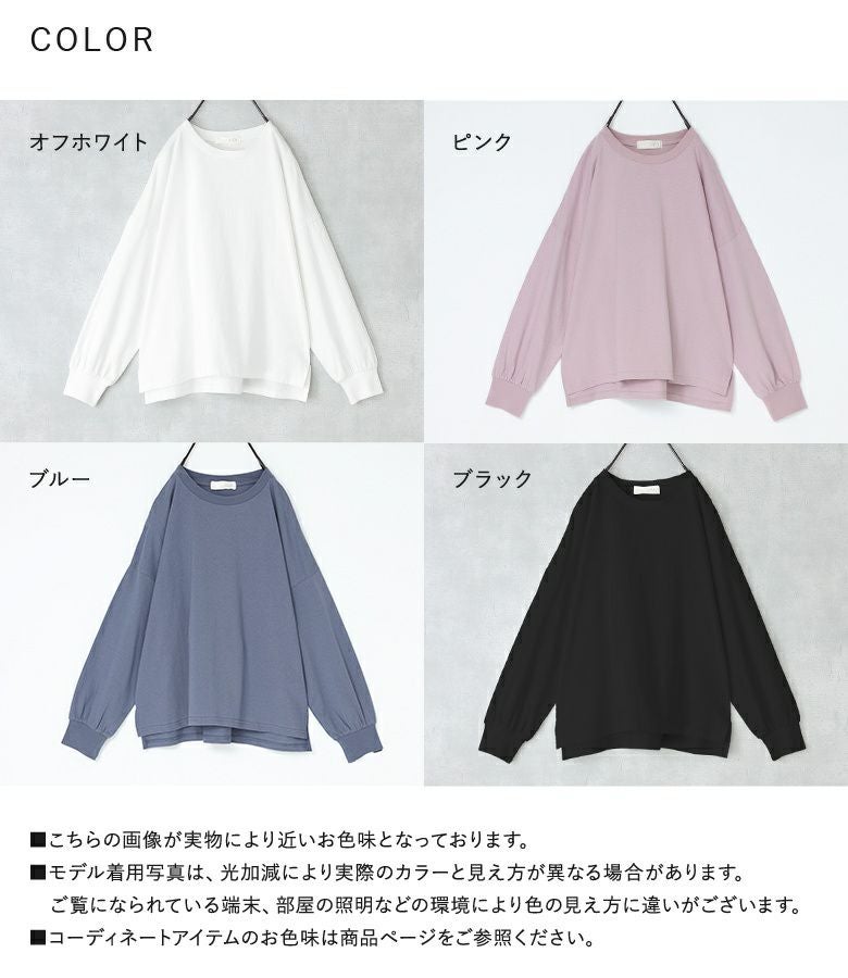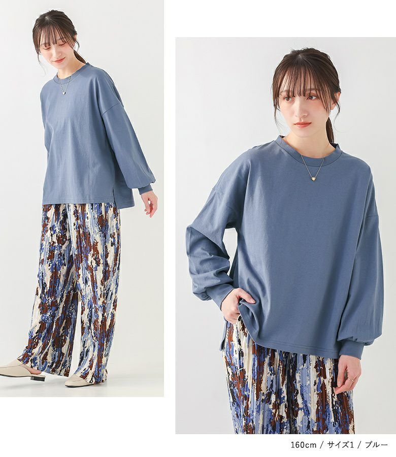 【普段着用】 Tops: L/LL Bottoms: L/LL | 【1】 袖丈:手首位 着丈:ヒップ真ん中より下位 腕周り:ややゆったり バスト:ややゆったり 全体:ややゆったり