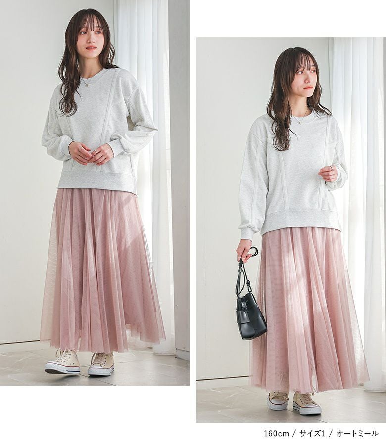 【普段着用】 Tops: M Bottoms: M | 【1】 袖丈:手の甲にかかる位 着丈:ヒップ真ん中位 腕周り:ややゆったり バスト:ややゆったり 全体:ややゆったり