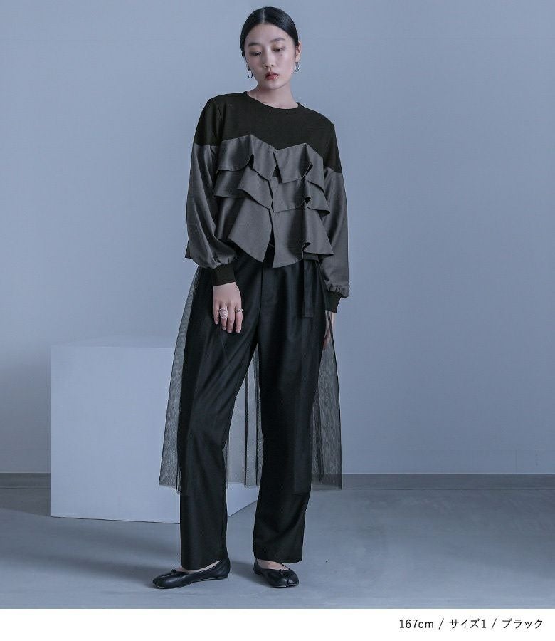 【普段着用】 Tops: M Bottoms: S/M | 【1】 袖丈:手首位 着丈:腰位 腕周り:ゆったり バスト:ゆったり 全体:ゆったり