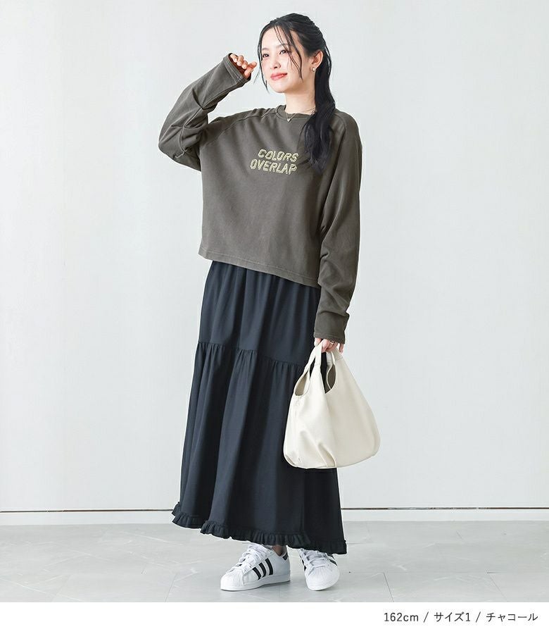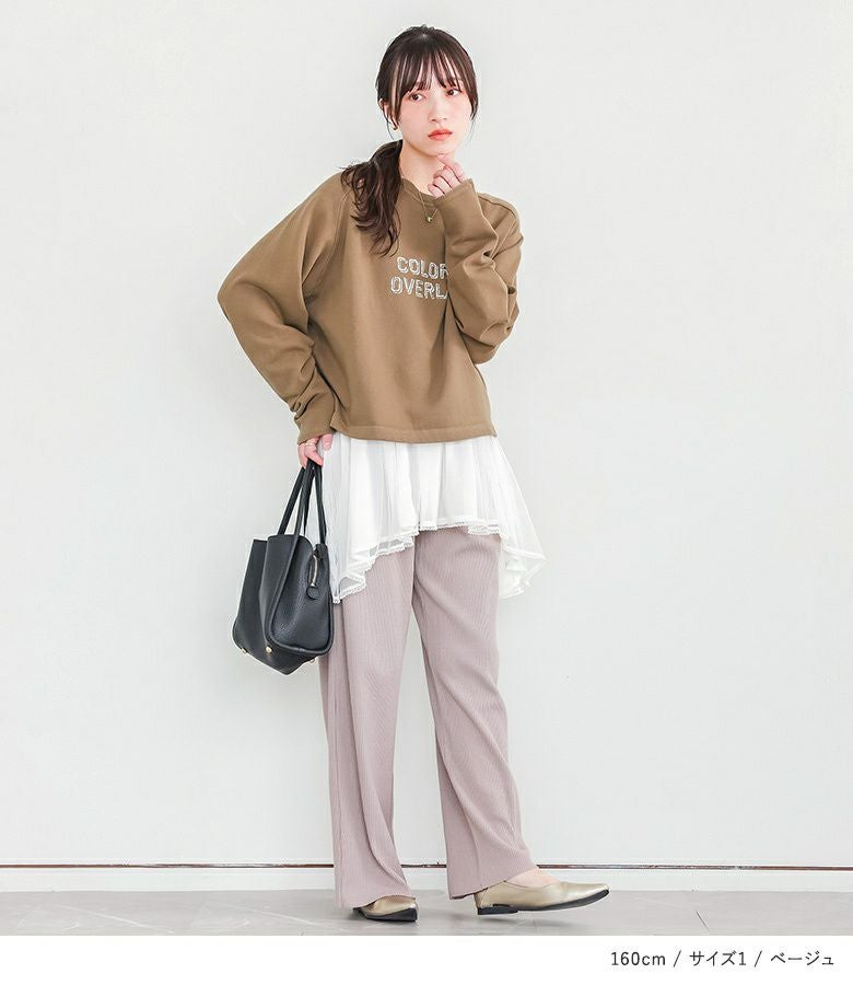 【普段着用】 Tops: S/M Bottoms: S/M | 【1】 袖丈:手の甲にかかる位 着丈:ヒップ上5cm位 腕周り:ジャスト バスト:ややゆったり 全体:ジャスト