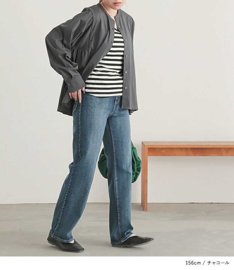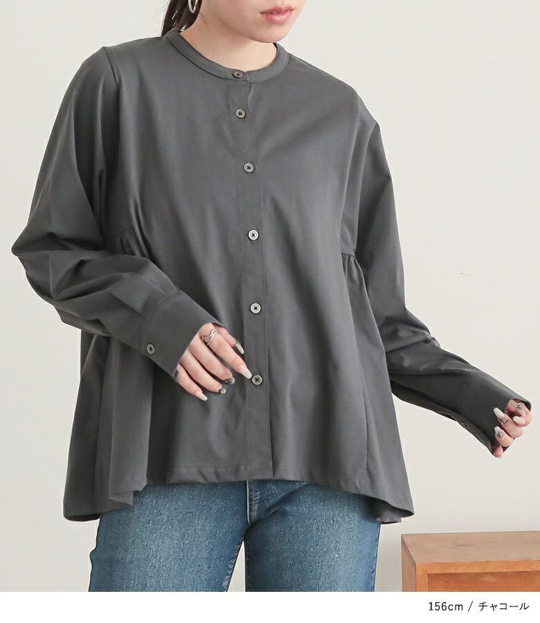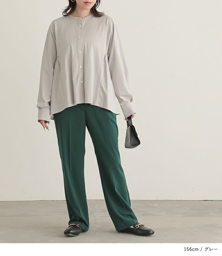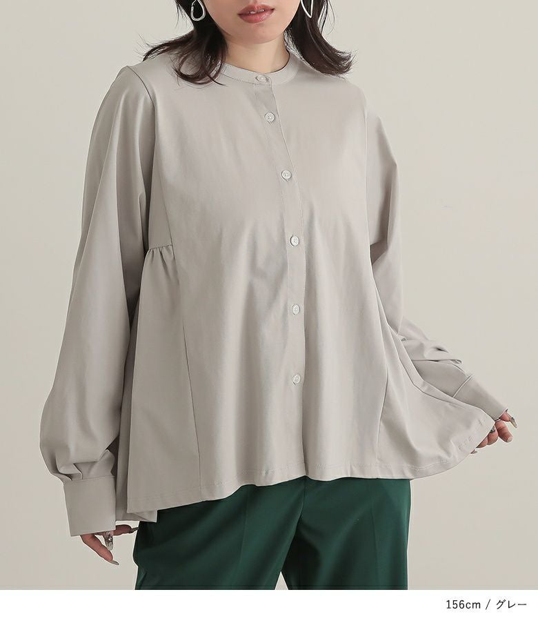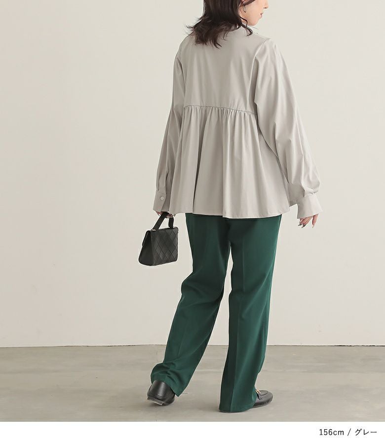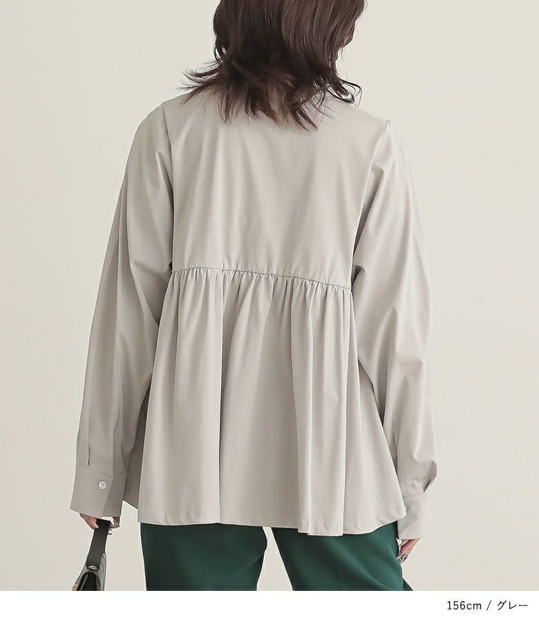 ゆるっとしたシルエットと、前後差のある丈感で体型をカバーしてくれるブラウス。