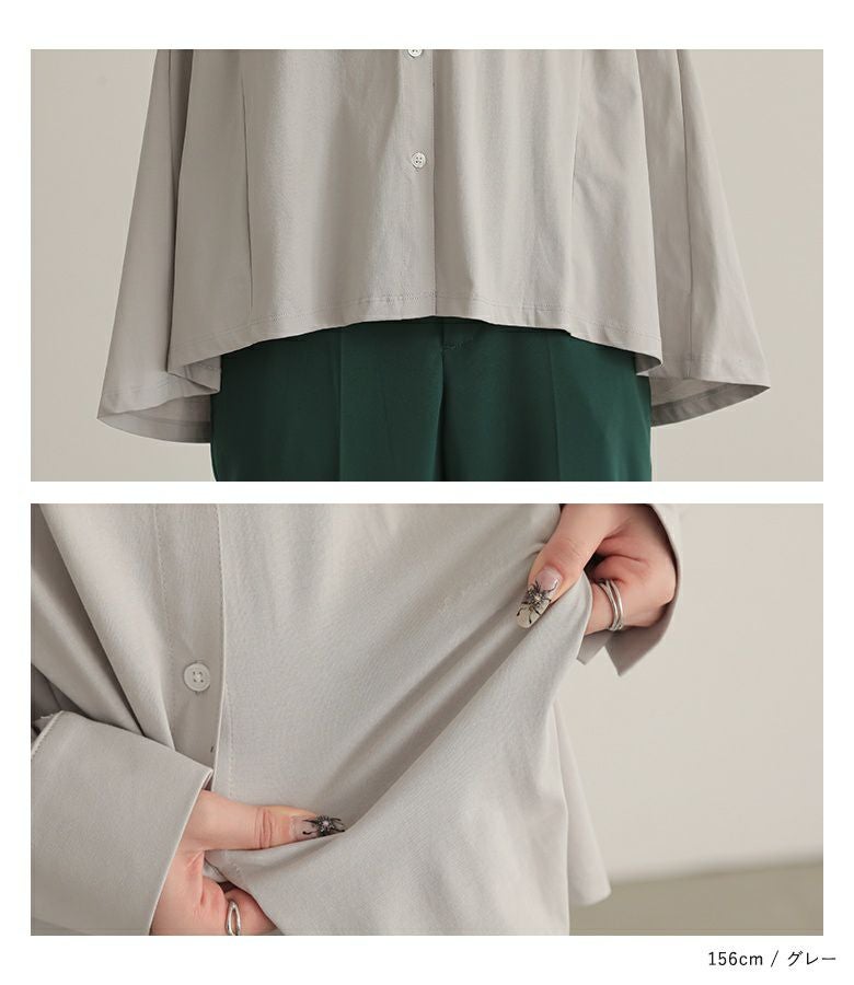 シャツに見えますが伸縮性があり、動きやすいです。