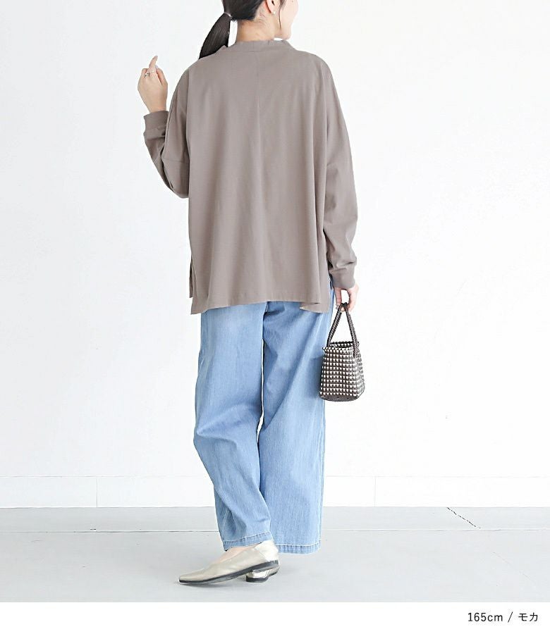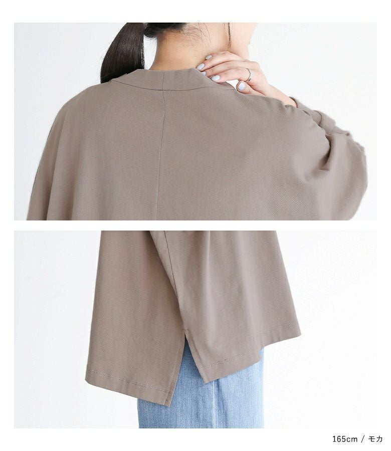 身頃にはさらりとした肌触りでコットン100%の生地を使用。接触冷感とUVカット機能付きのため、暑い季節にもさっと羽織れるのが嬉しいポイントです。