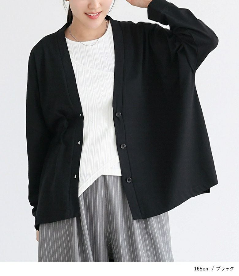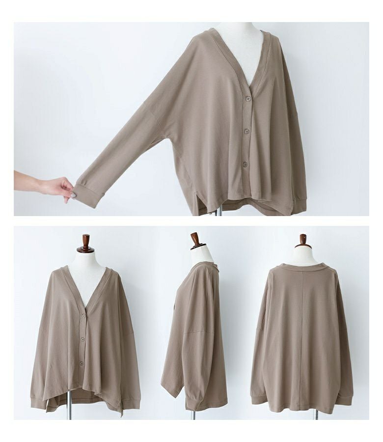 流れるようなドルマンシルエットでこなれた印象をプラスできるカーディガン。たっぷり身幅と長めの丈感で気になる部分を自然にカバーできます。Vネックでお顔周りをスッキリと見せてくれ小顔効果が期待できるのも嬉しいポイント。