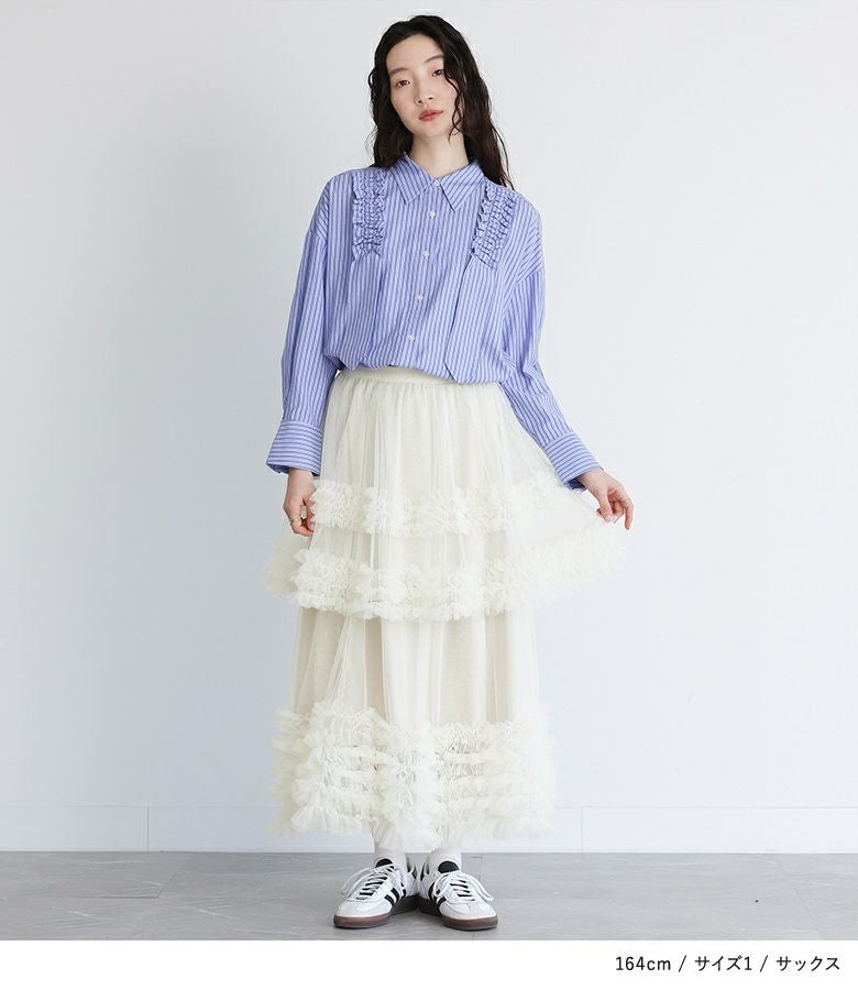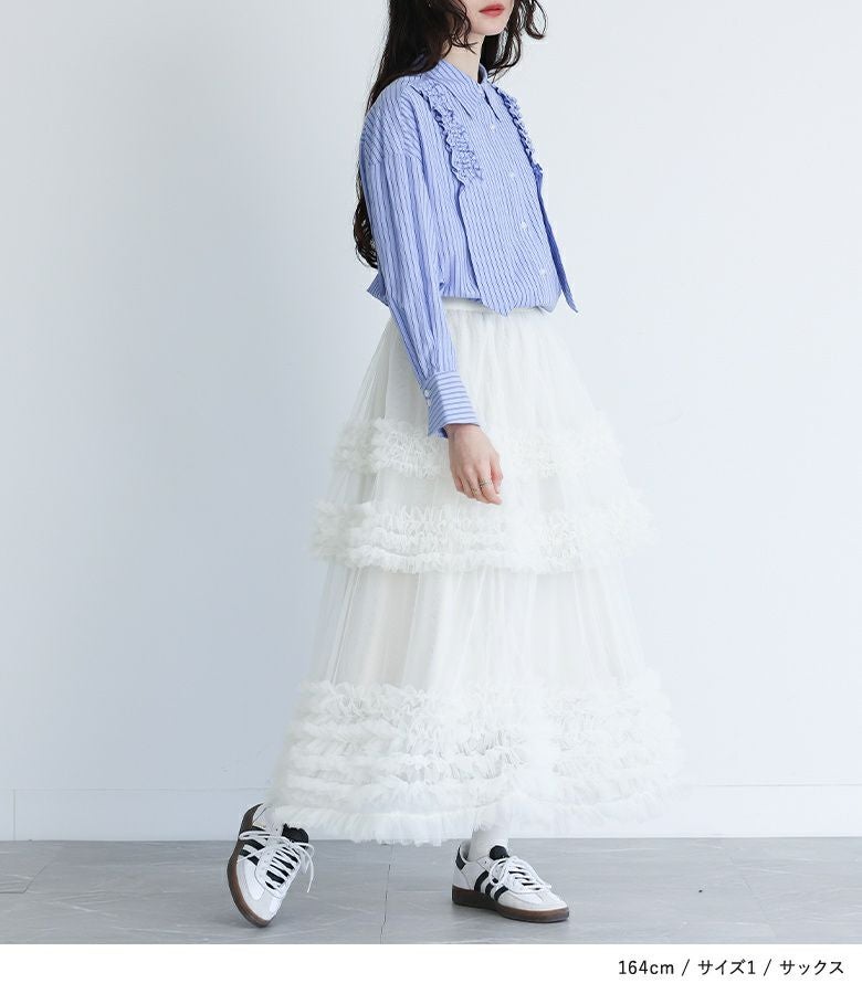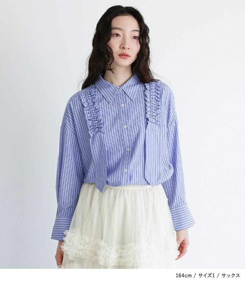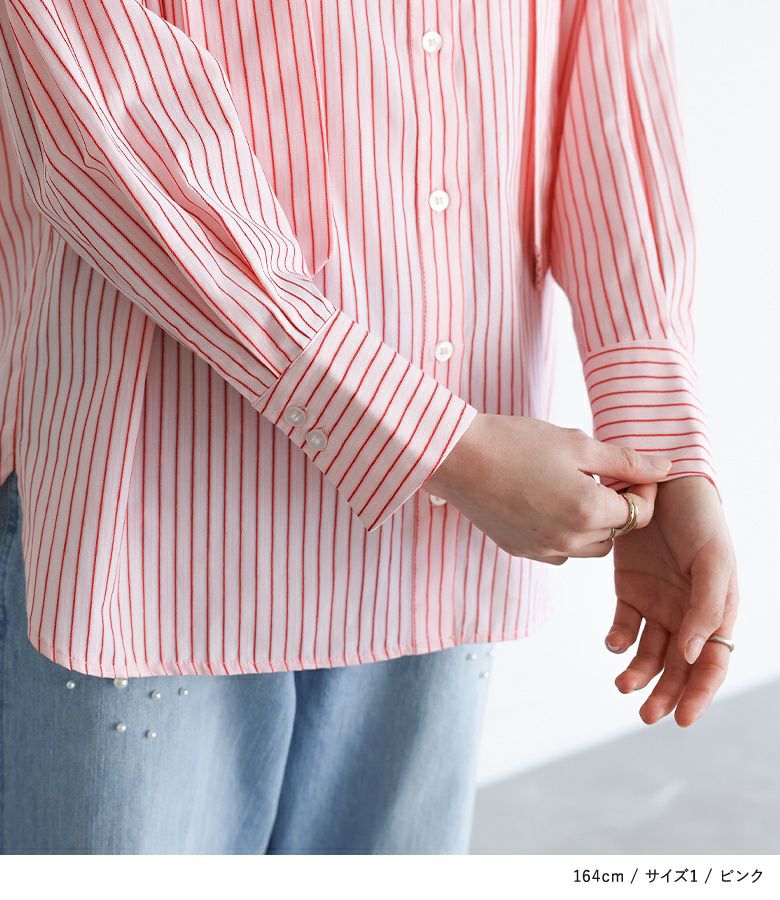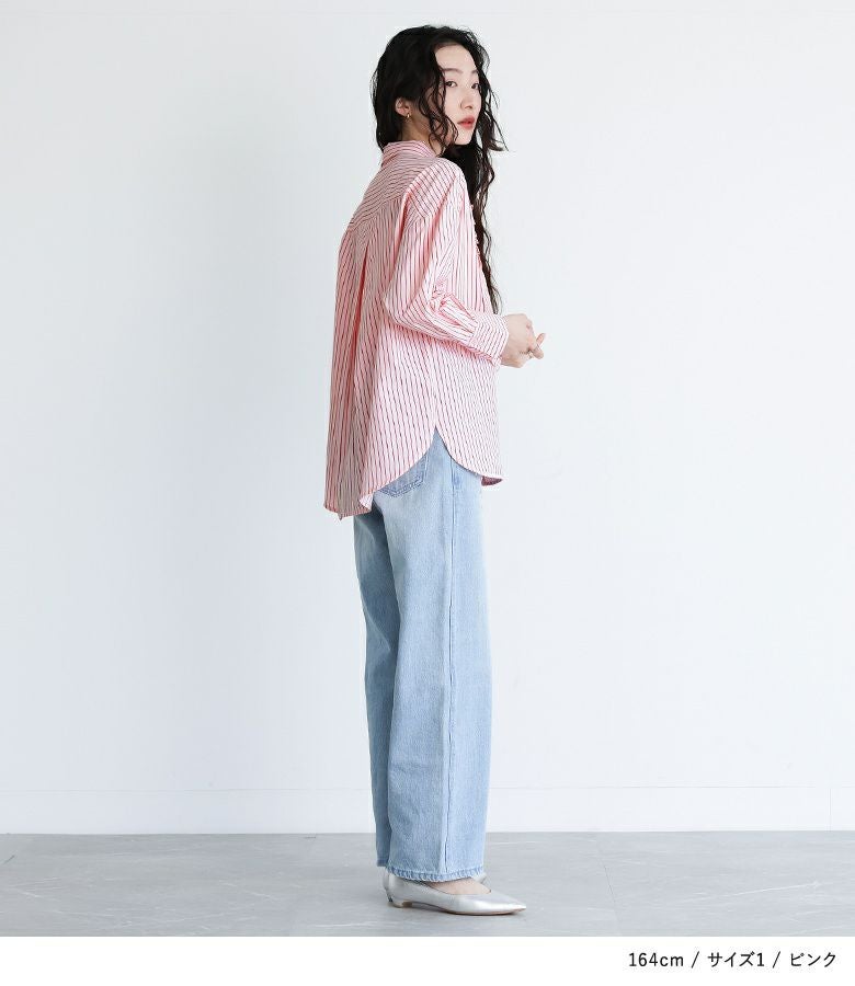 【普段着用】 Tops: L Bottoms: L | 【1】 袖丈:手首位 着丈:ヒップがちょうど隠れる位 腕周り:ジャスト バスト:ジャスト 全体:ジャスト