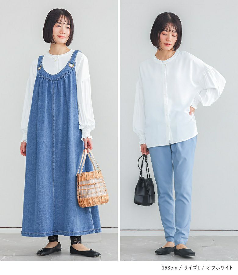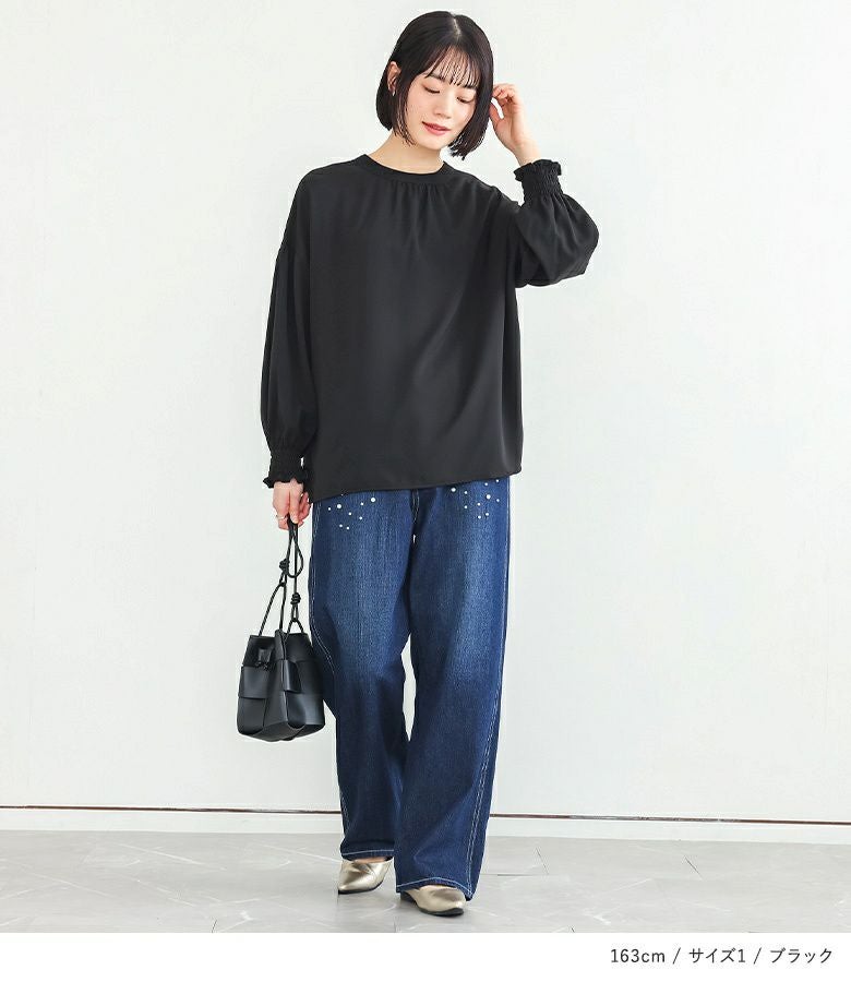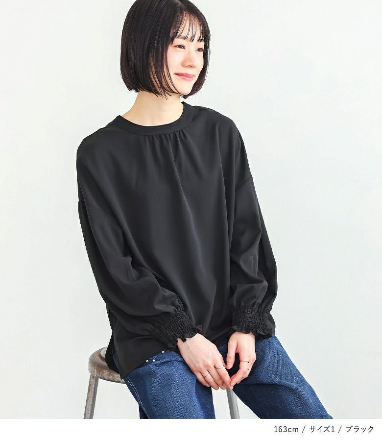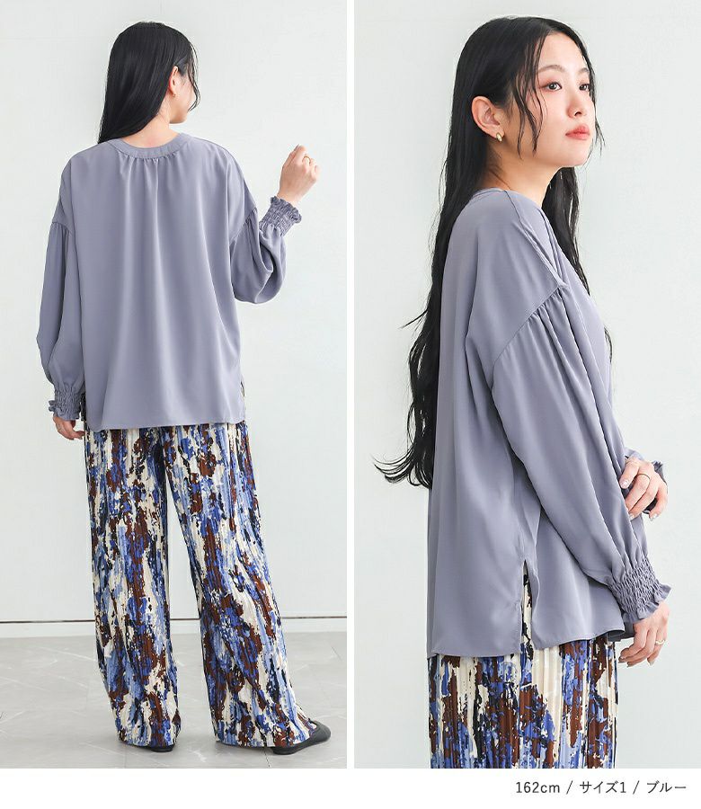 【普段着用】 Tops: L Bottoms: L | 【1】 袖丈:手首位 着丈:ヒップ下少し見える位 腕周り:ややゆったり バスト:ややゆったり 全体:ややゆったり