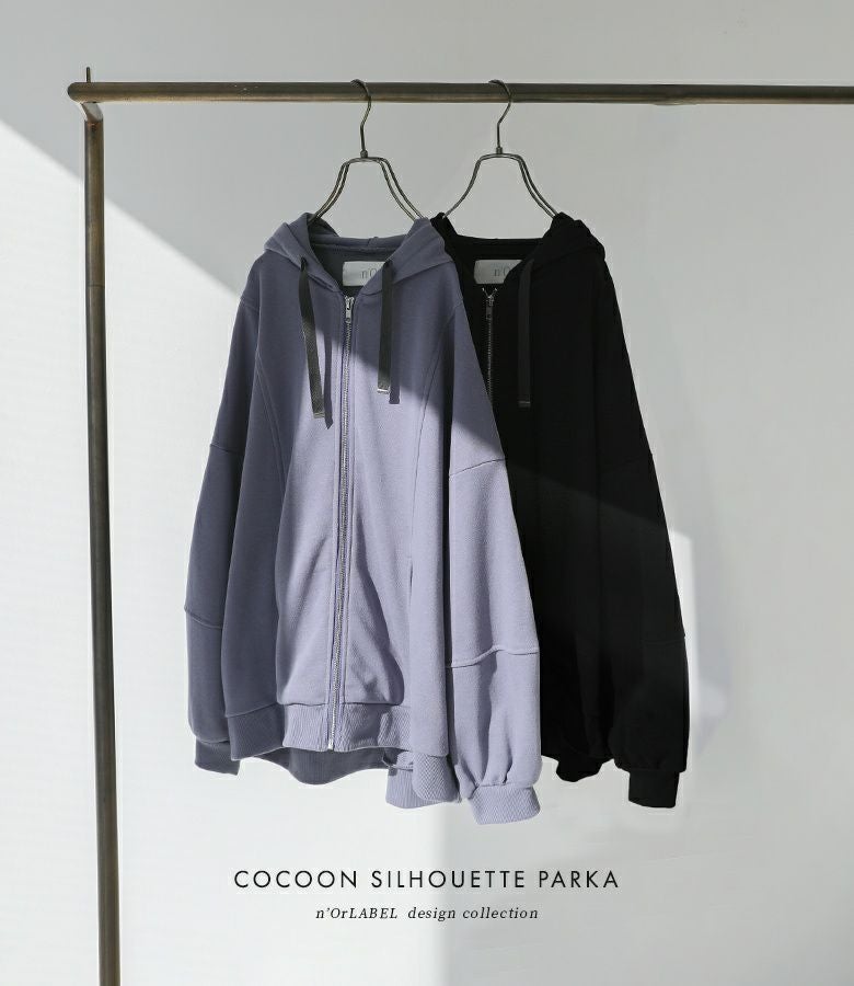 『n'OrLABEL裏毛ランタンスリーブコクーンパーカー』