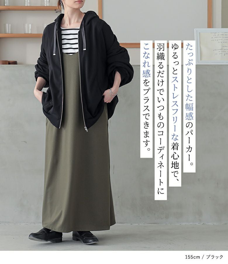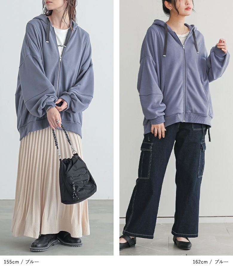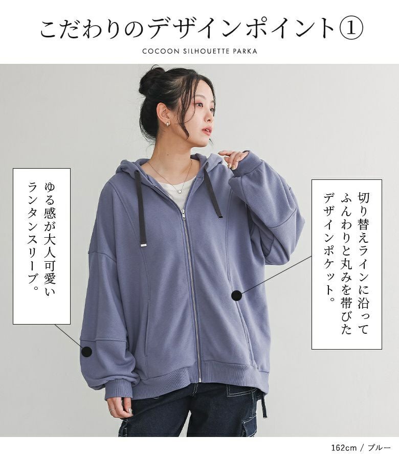 たっぷりとした幅感のランタンスリーブパーカー。