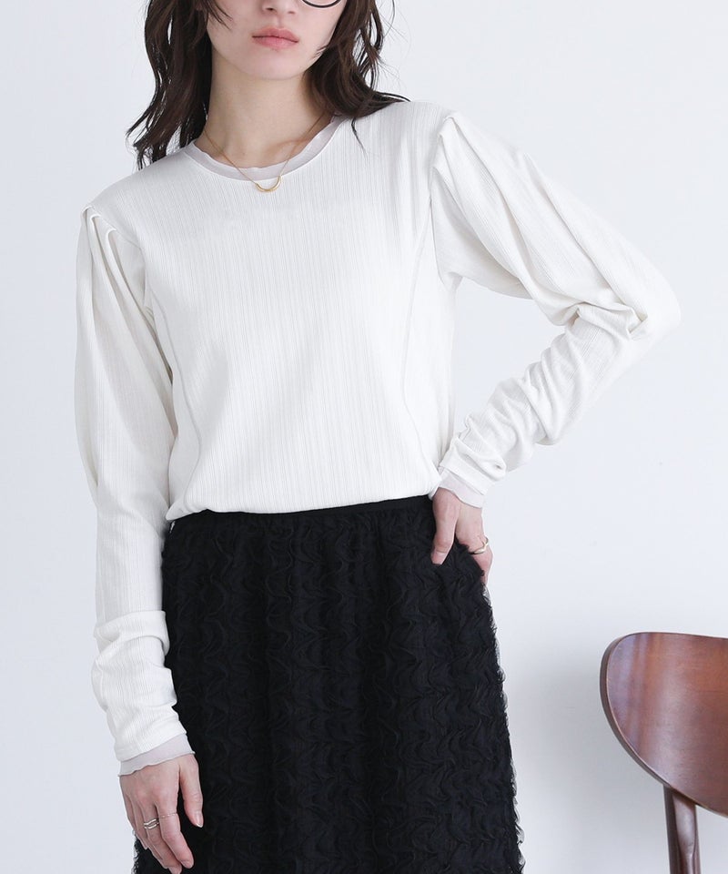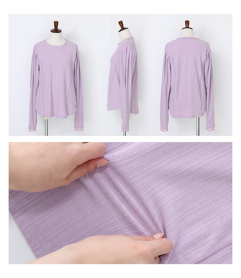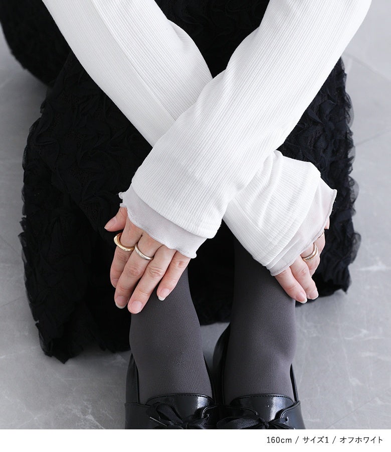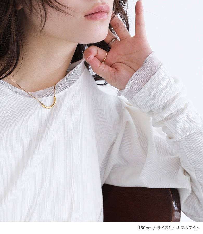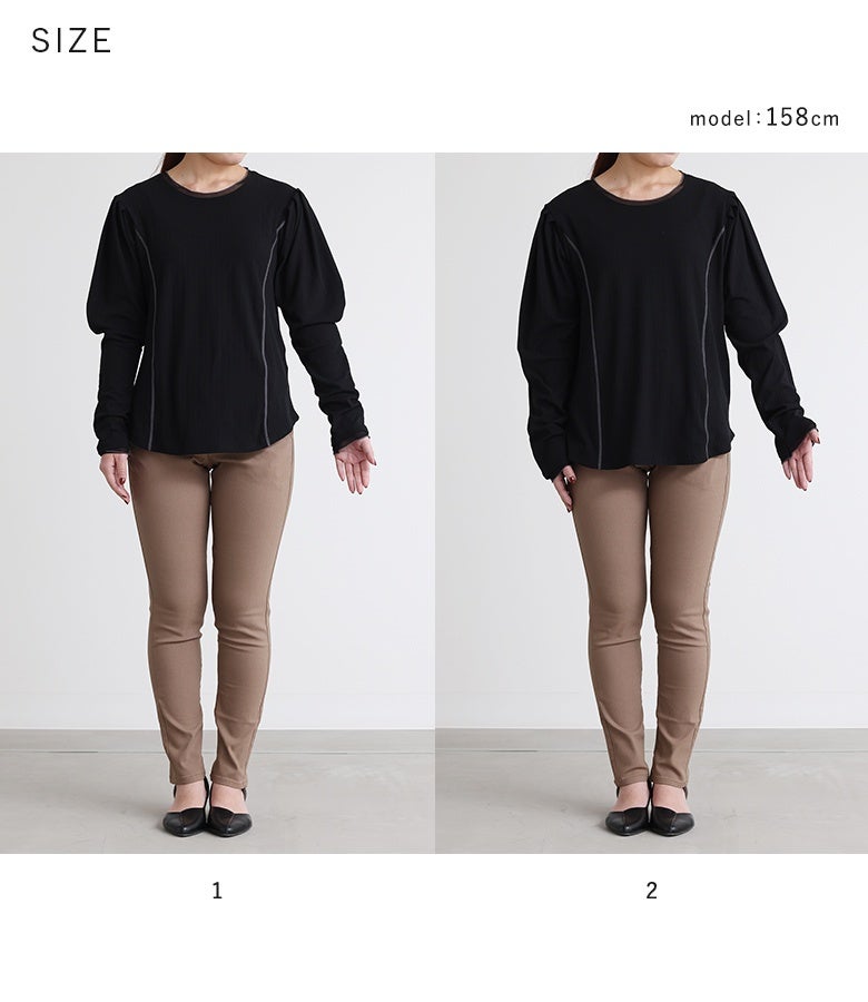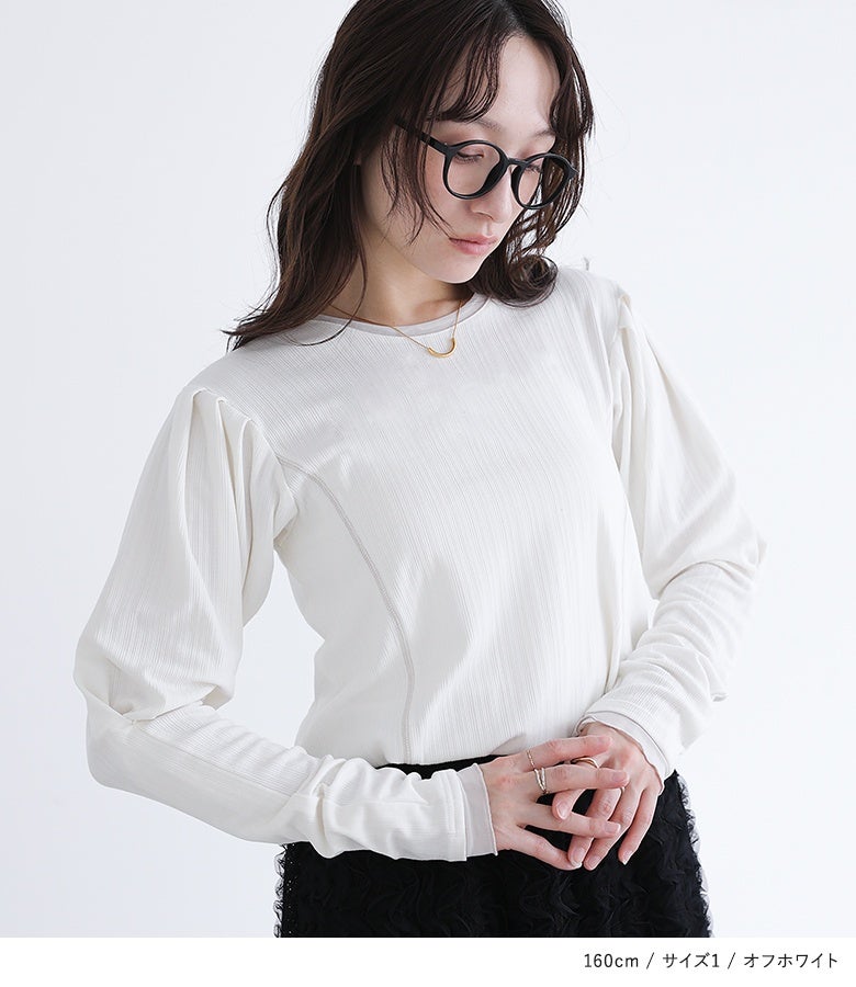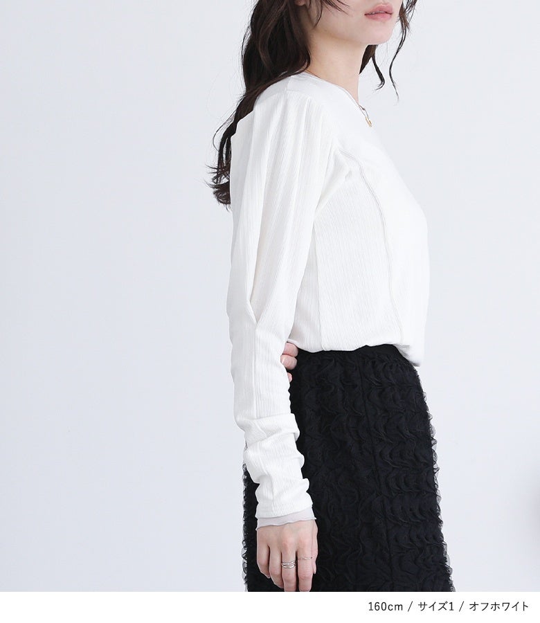 【普段着用】 Tops:M/L Bottoms: M/L | 【1】 袖丈:手の甲にかかる位 着丈:ヒップ真ん中より上位 腕周り:ややゆったり バスト:ジャスト 全体:スッキリ