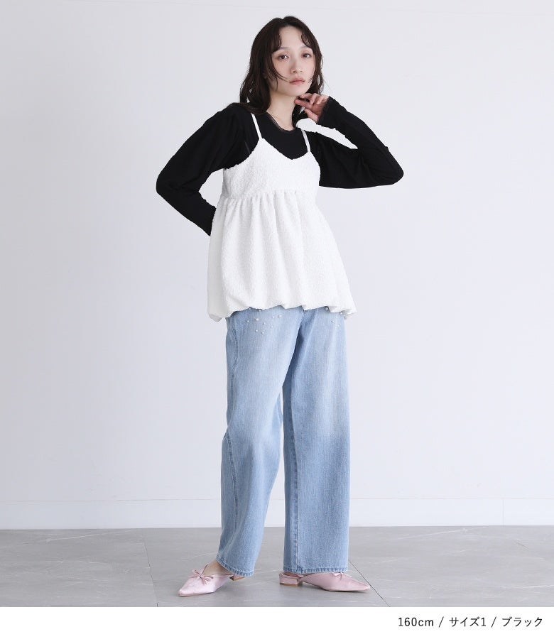 【普段着用】 Tops: L/LL Bottoms: L/LL | 【1】 袖丈:指先が少し見える位 着丈:ヒップ真ん中位 腕周り:ジャスト バスト:少しタイト 全体:ジャスト