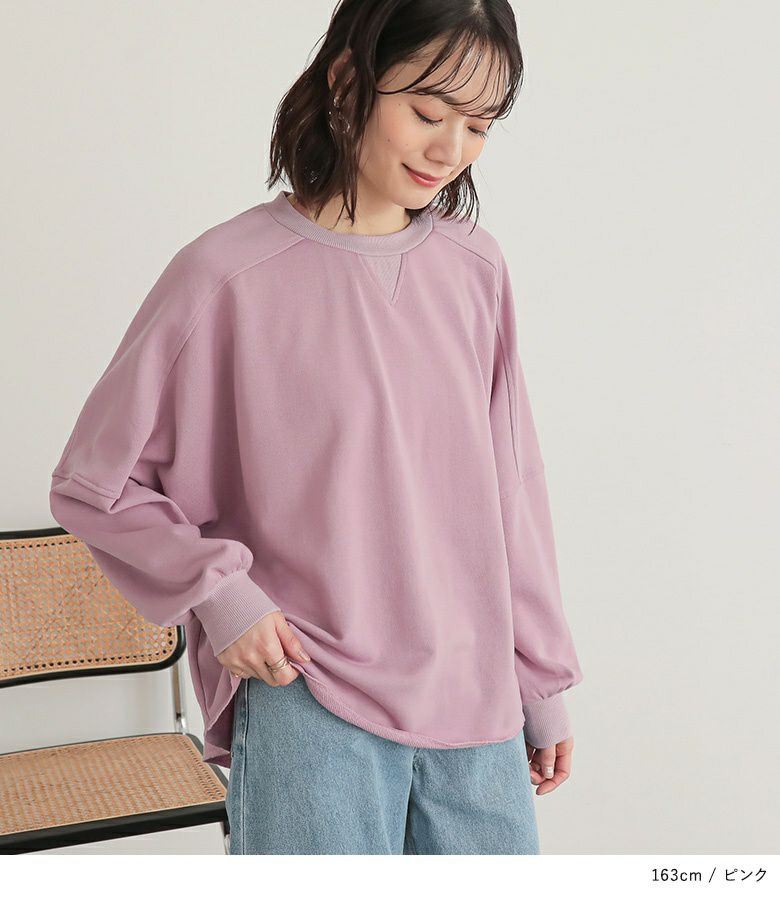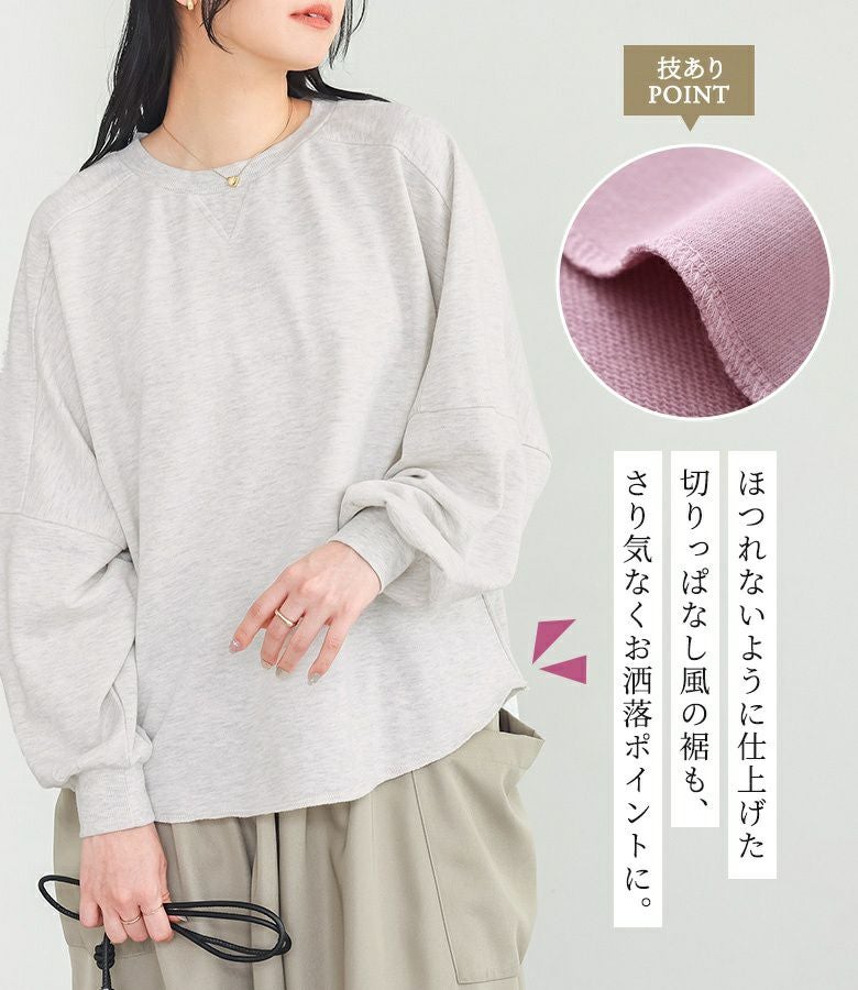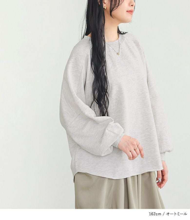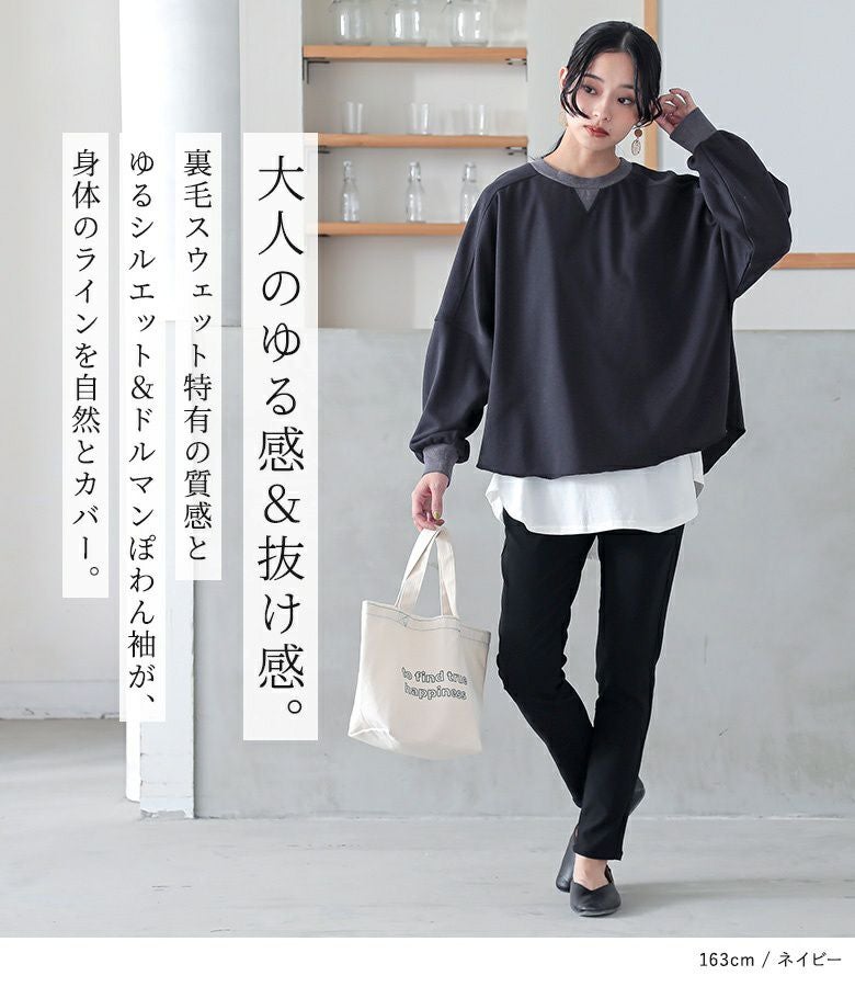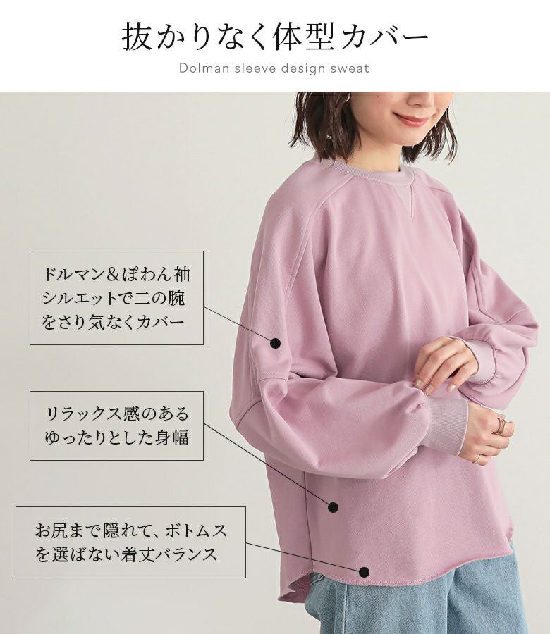 ゆるっとしたシルエットが大人可愛い、ドルマンデザインのシンプルスウェット。