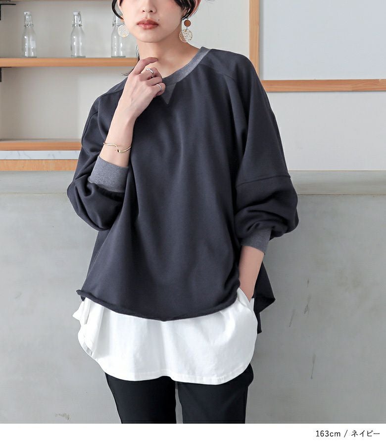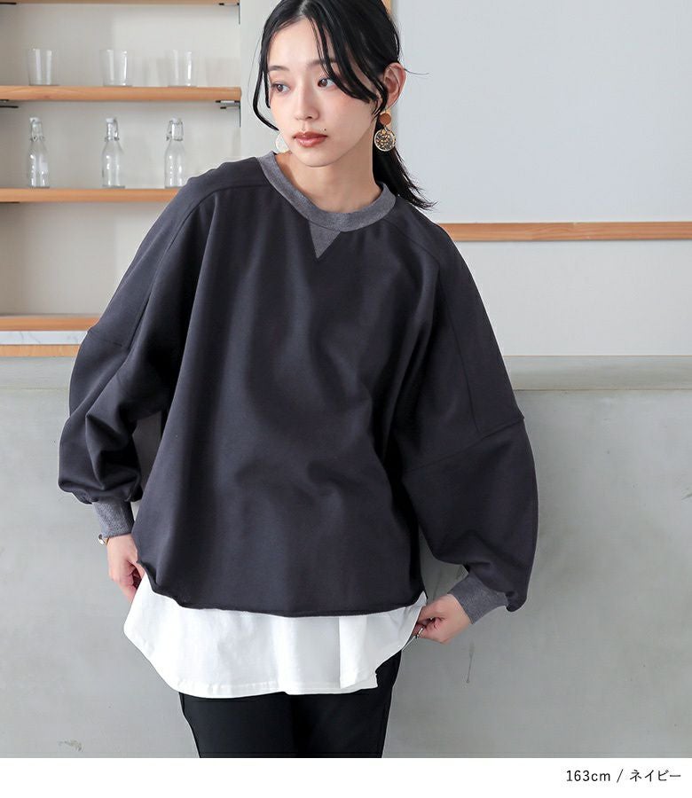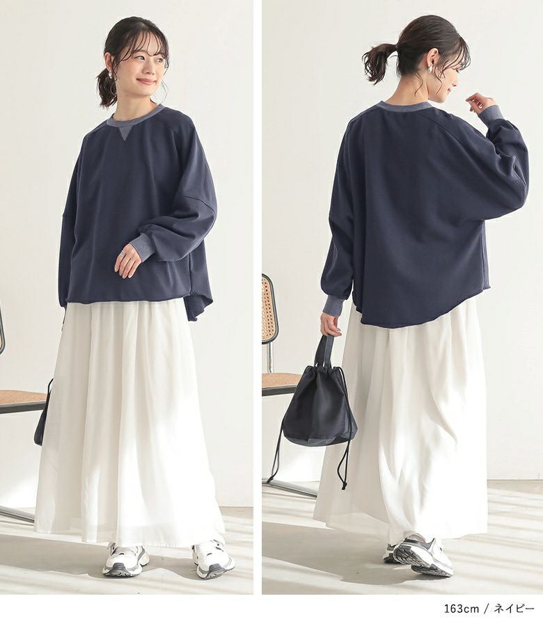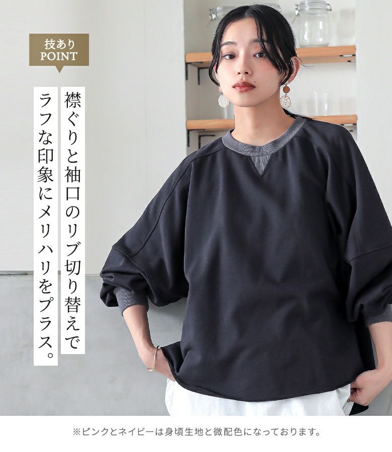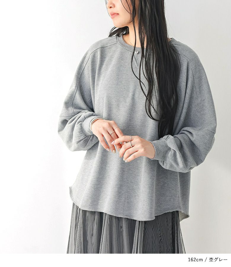 ゆるっとしたシルエットが大人可愛い、ドルマンデザインのシンプルスウェット。