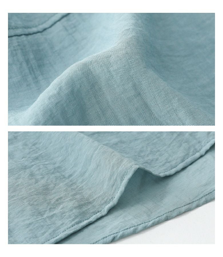 少し艶のある質感と、さらりとした風合いの生地を使用。透け感も程よくあり、季節の変わり目に快適な着心地を叶えます。