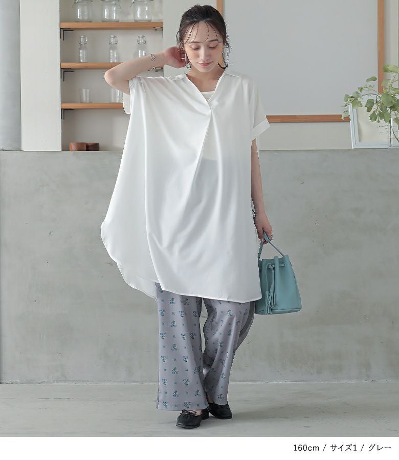 【普段着用】 Tops: S/M Bottoms: S/M | 【1】 着丈(ウエスト穿き):くるぶしが見える位 ウエスト:ややゆったり ヒップ:ゆったり 太もも周り:ゆったり 全体:ゆったり