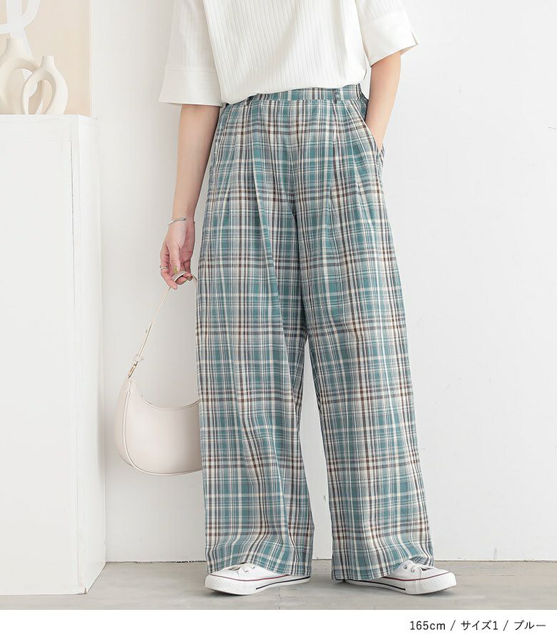 【普段着用】 Tops: L Bottoms: L | 【1】 着丈(ウエスト穿き):かかとが隠れる位 ウエスト:ジャスト ヒップ:ややゆったり 太もも周り:ややゆったり 全体:ややゆったり
