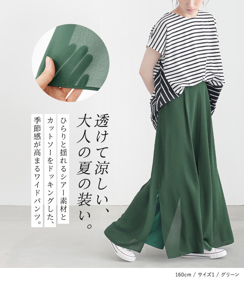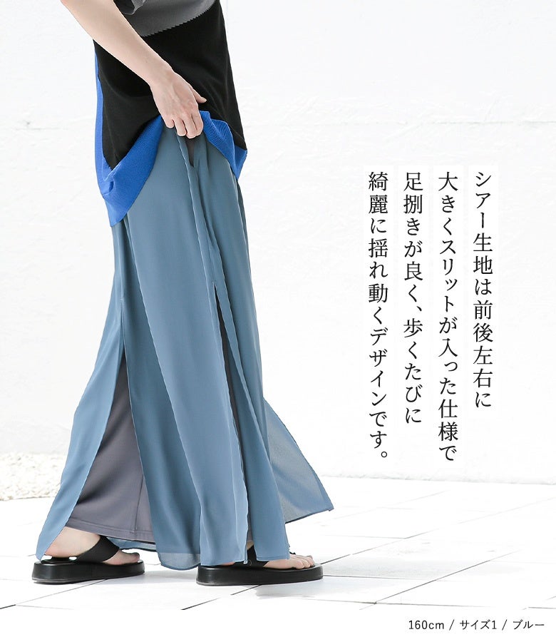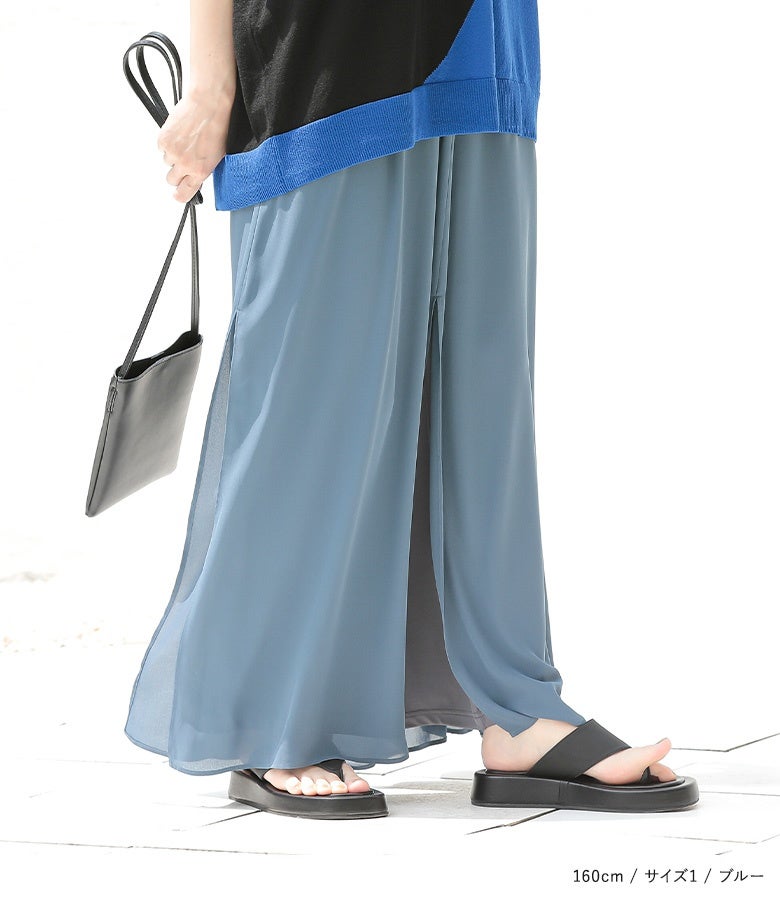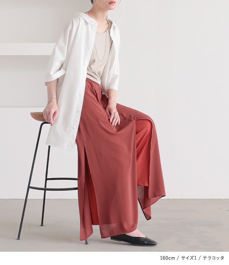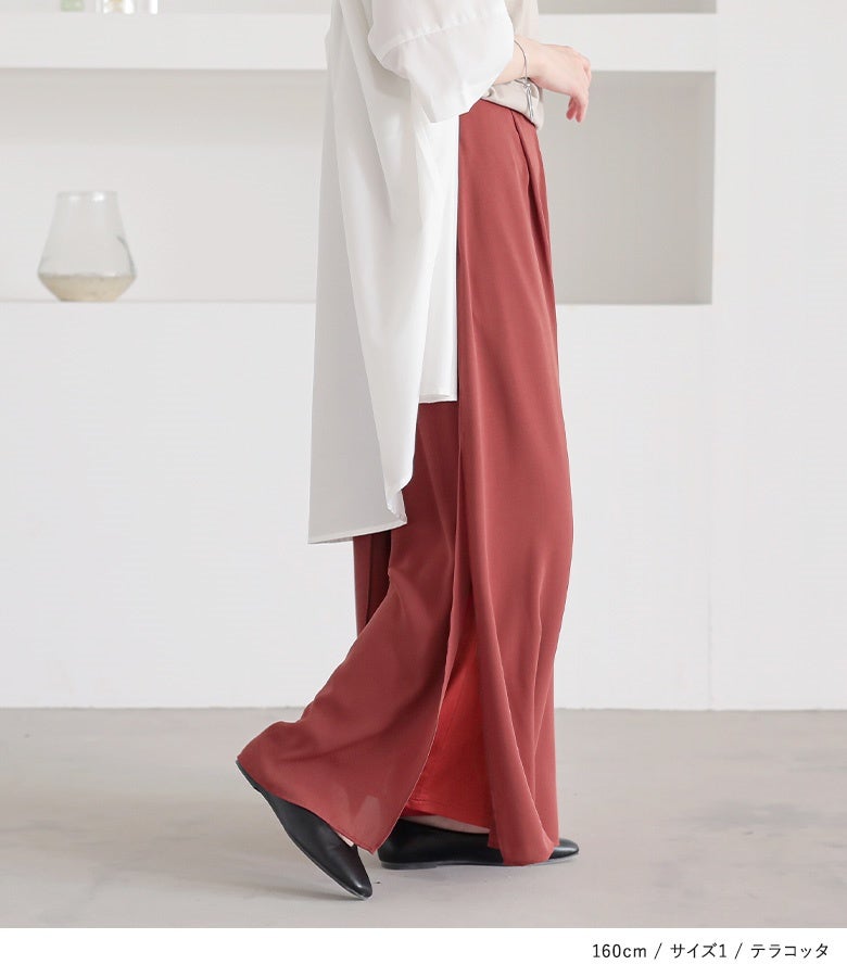 【普段着用】 Tops: S/M Bottoms: S/M | 【1】 着丈(ウエスト穿き):くるぶしが隠れる位 ウエスト:ややゆったり ヒップ:ゆったり 太もも周り:ゆったり 全体:スッキリ